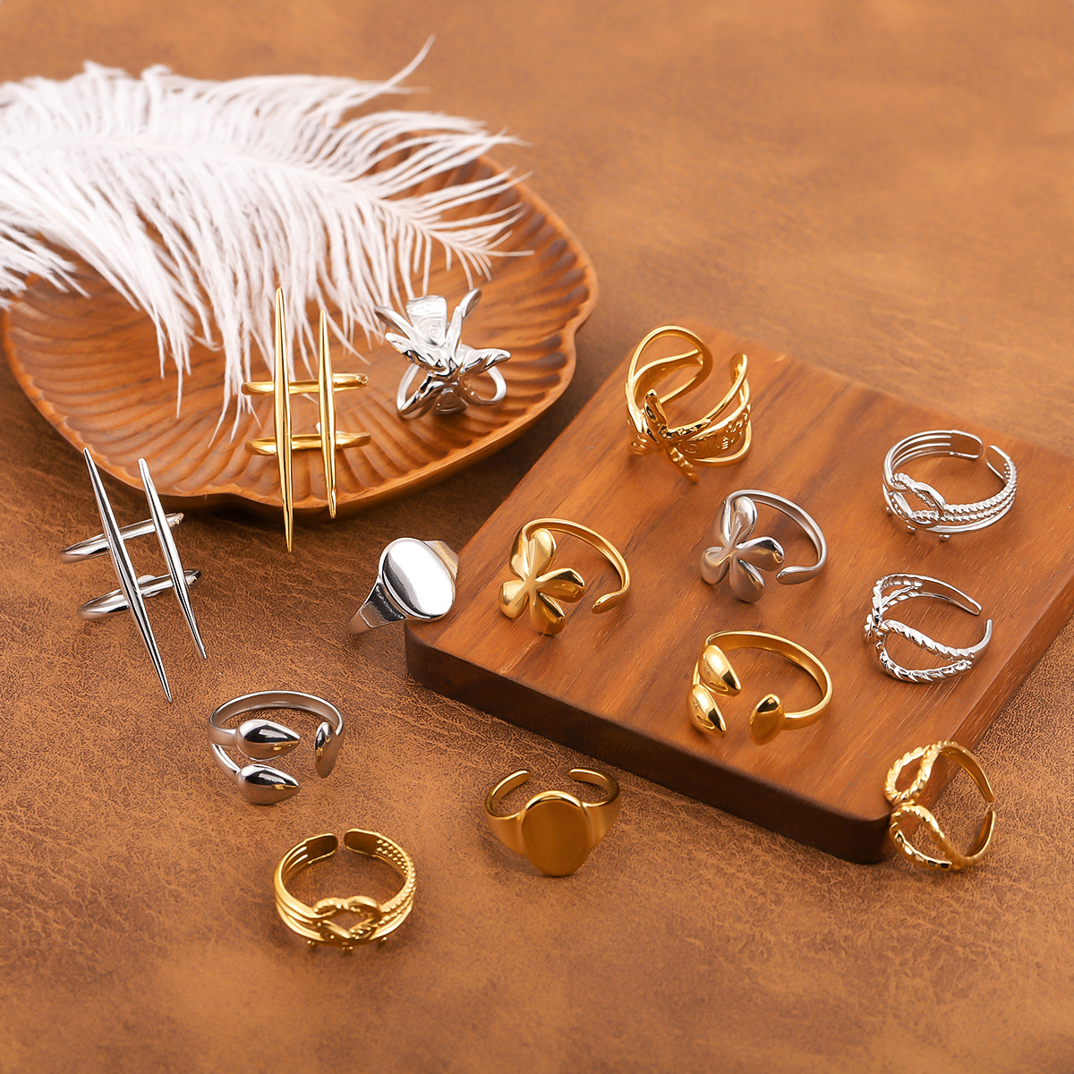 New Stainless Steel Oil-Pressed Geometric Open Ring, Wide Band, Unisex Design