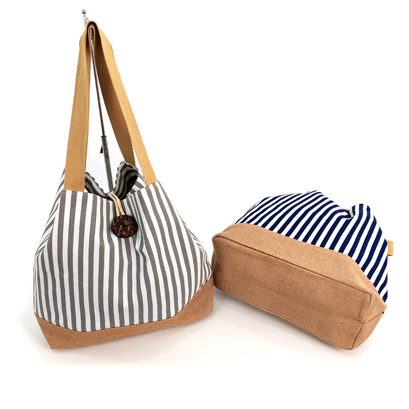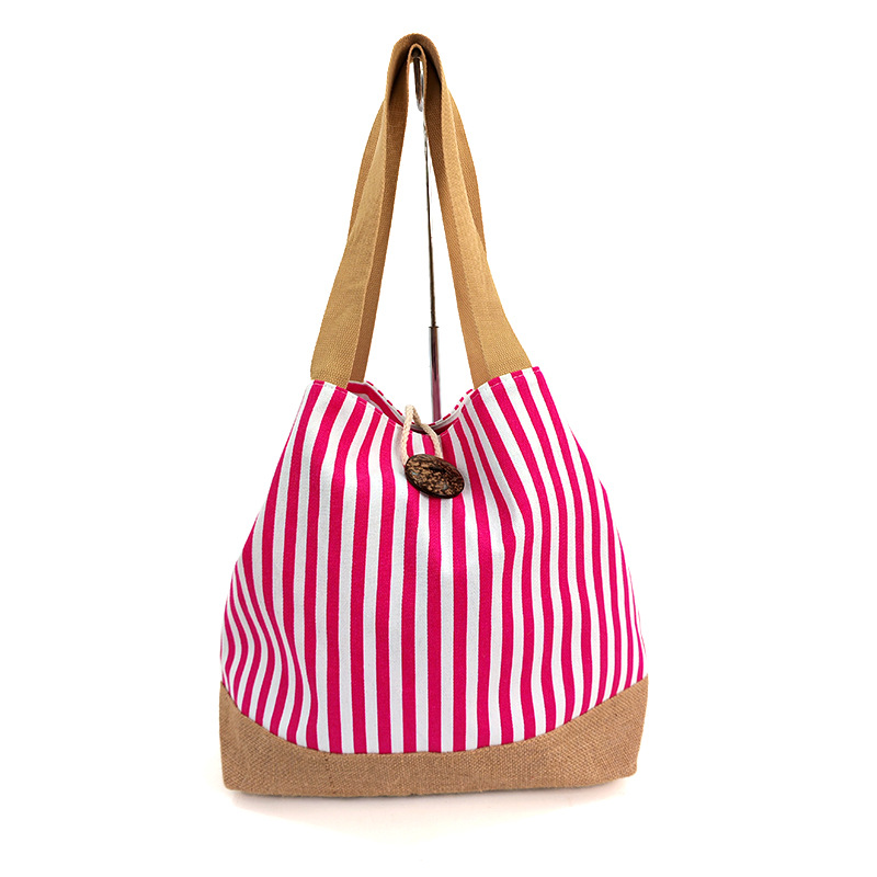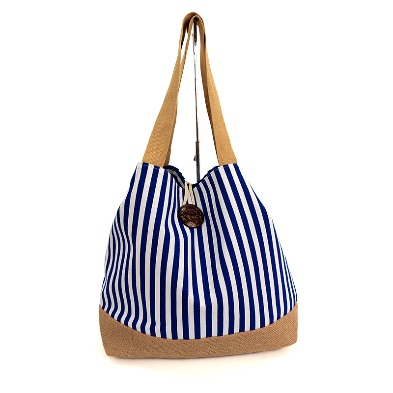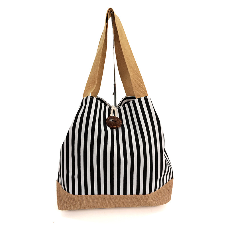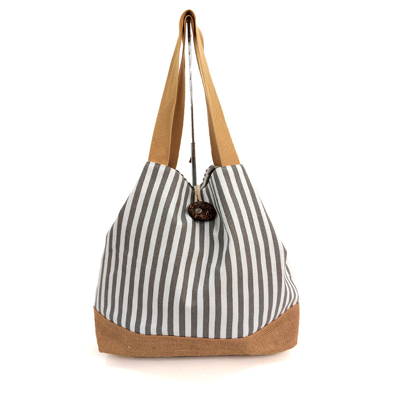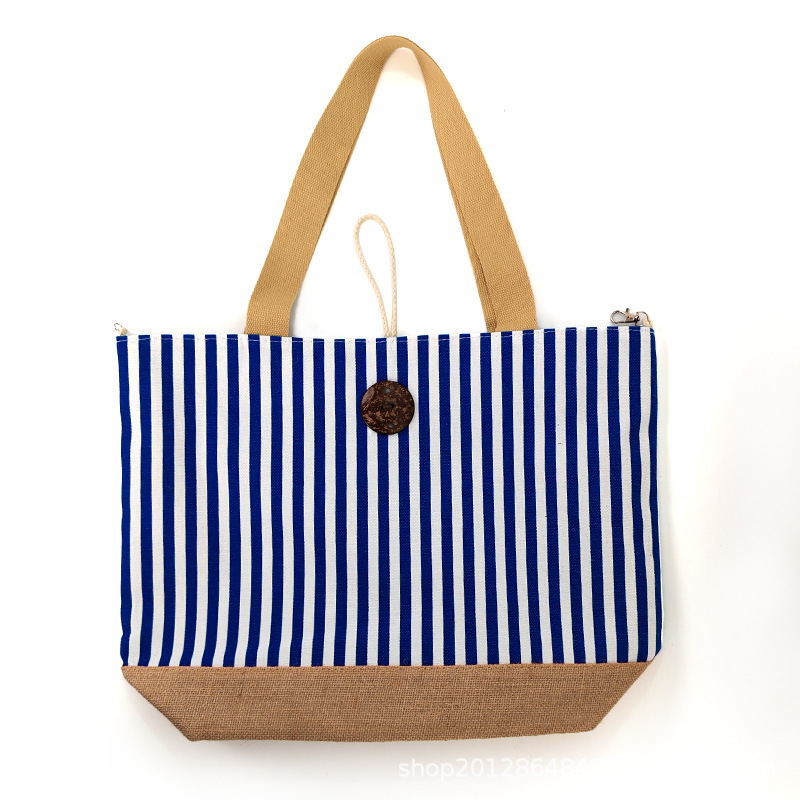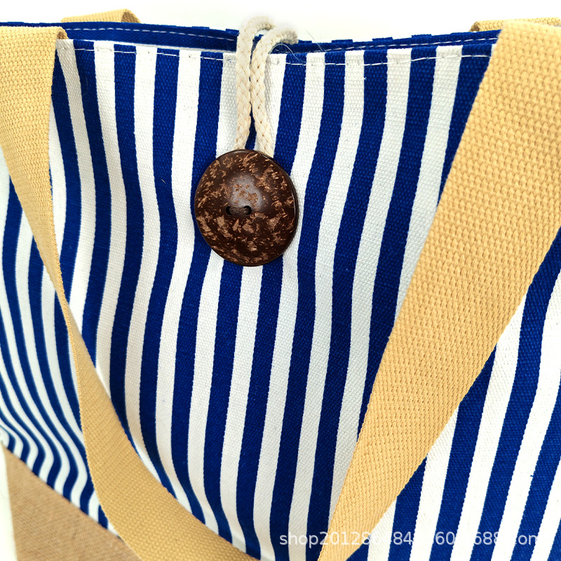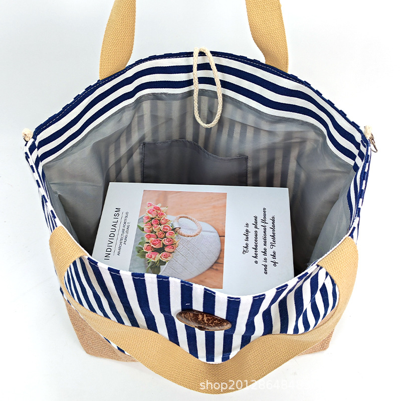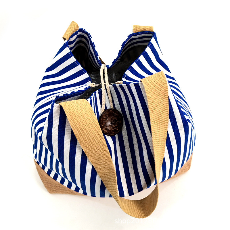New Striped Canvas Large-Capacity Shoulder Commuter Tote Bag