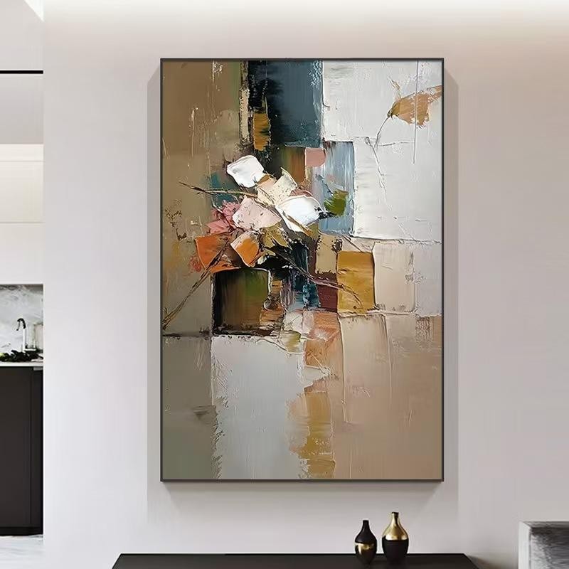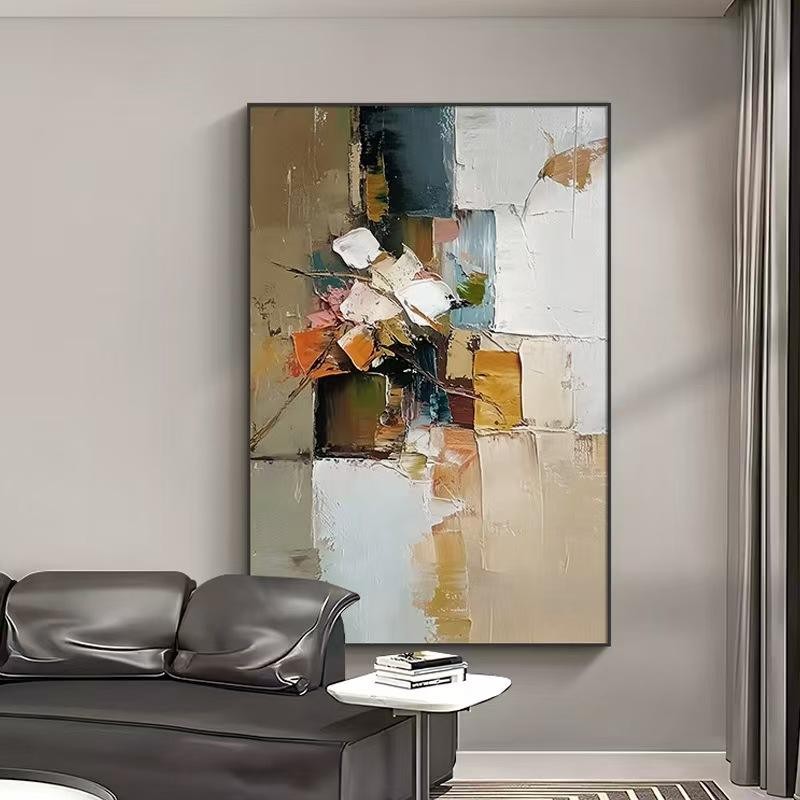 New Style Color Block Living Room Decoration Painting Abstract Texture Handmade Oil Painting High-End Hotel Corridor Mural