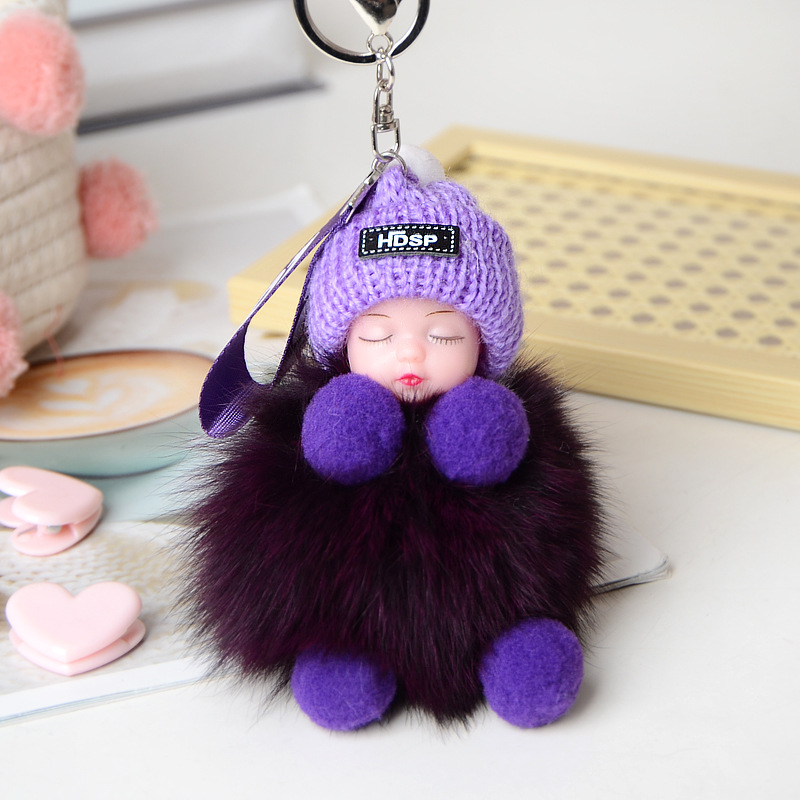 New Style Fox Fur Ball Sleeping Doll Keychain