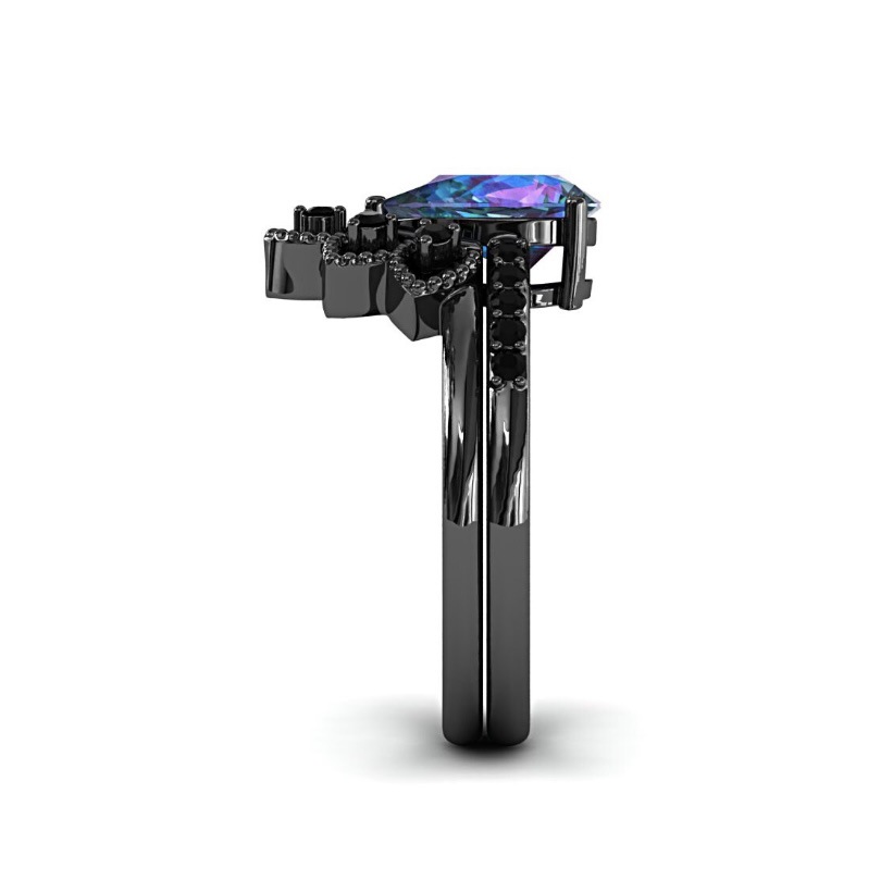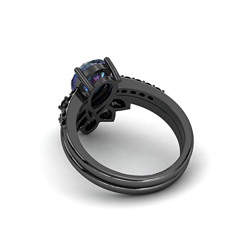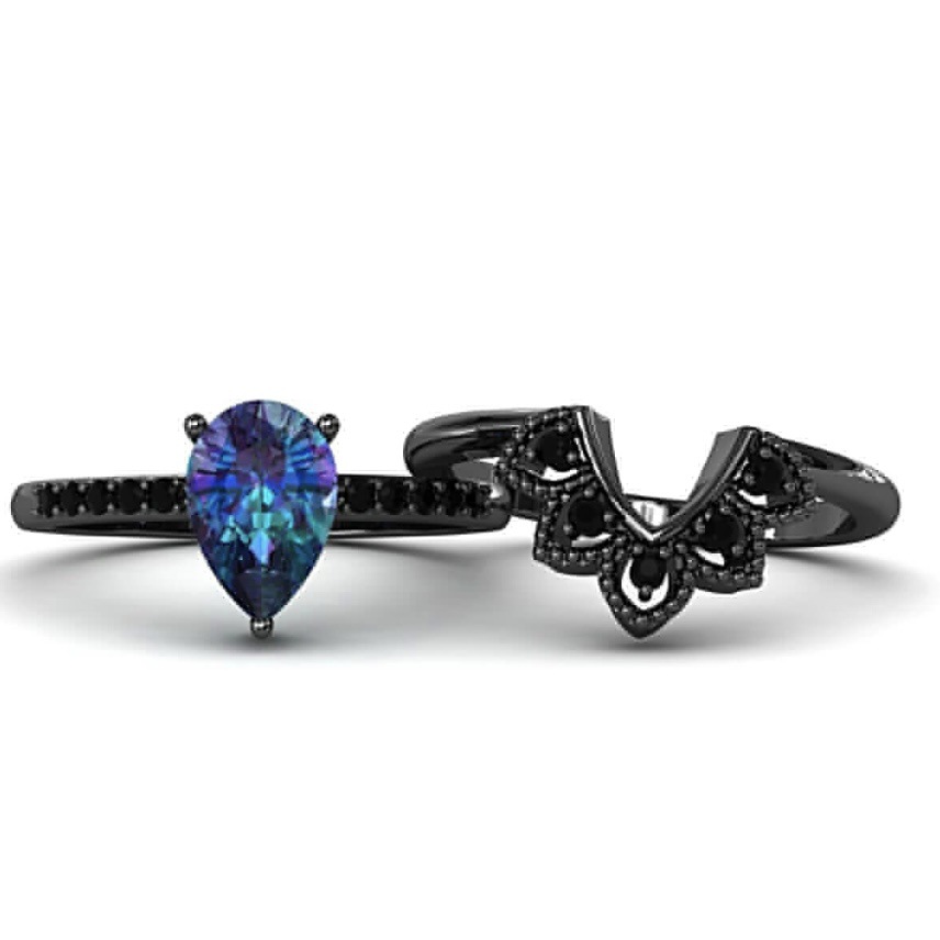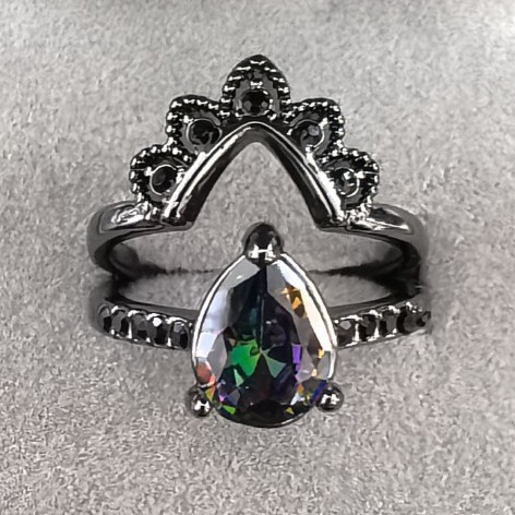 Color: Gun Black with Colorful Stones, Pair of Rings