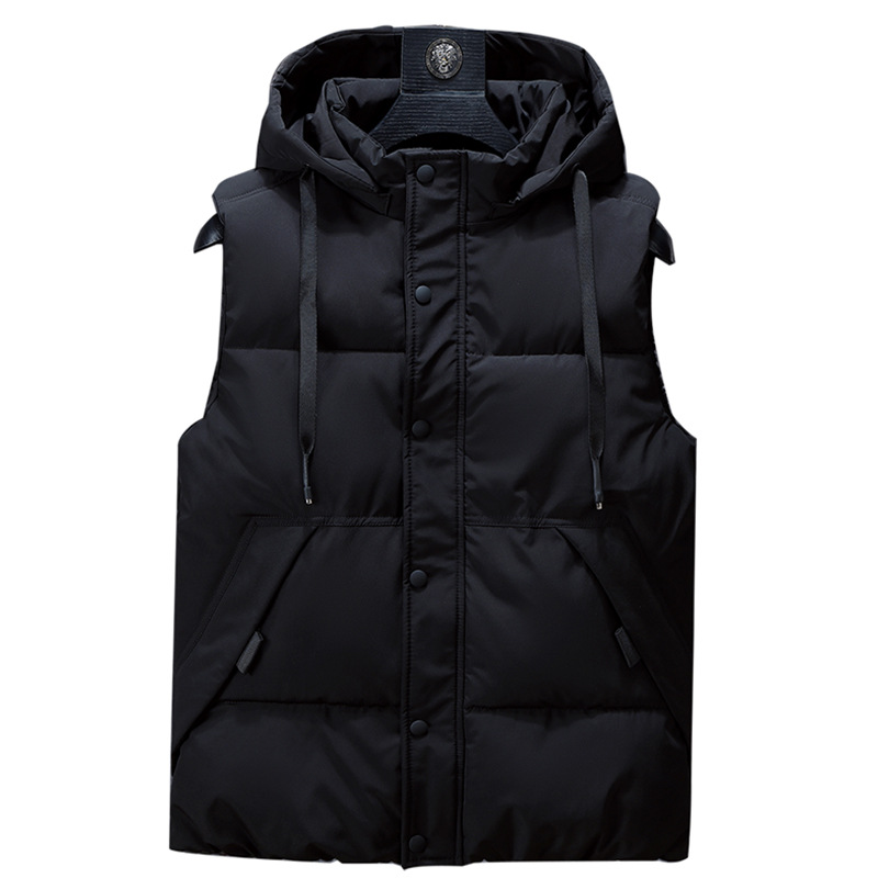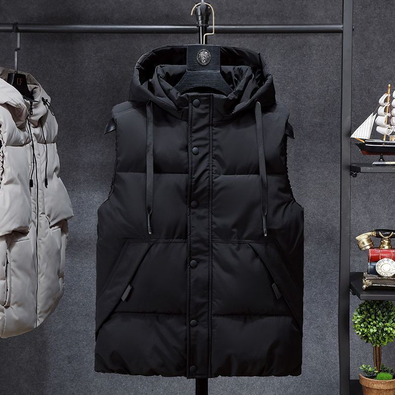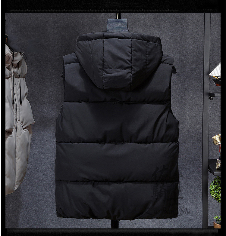 This is a detachable hat stand collar down cotton vest filled with down cotton