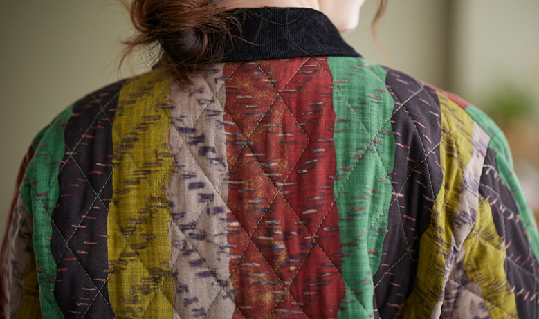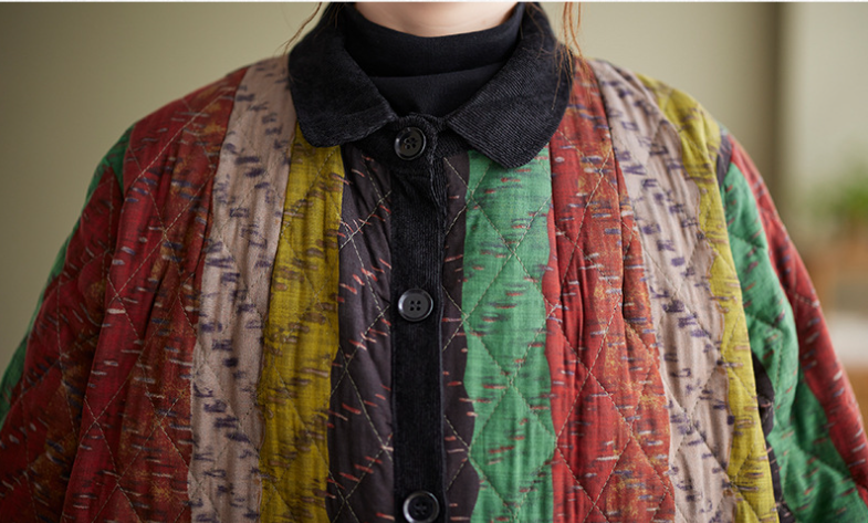 Color: orange blue stripe cotton coat, yellow green stripe cotton coat