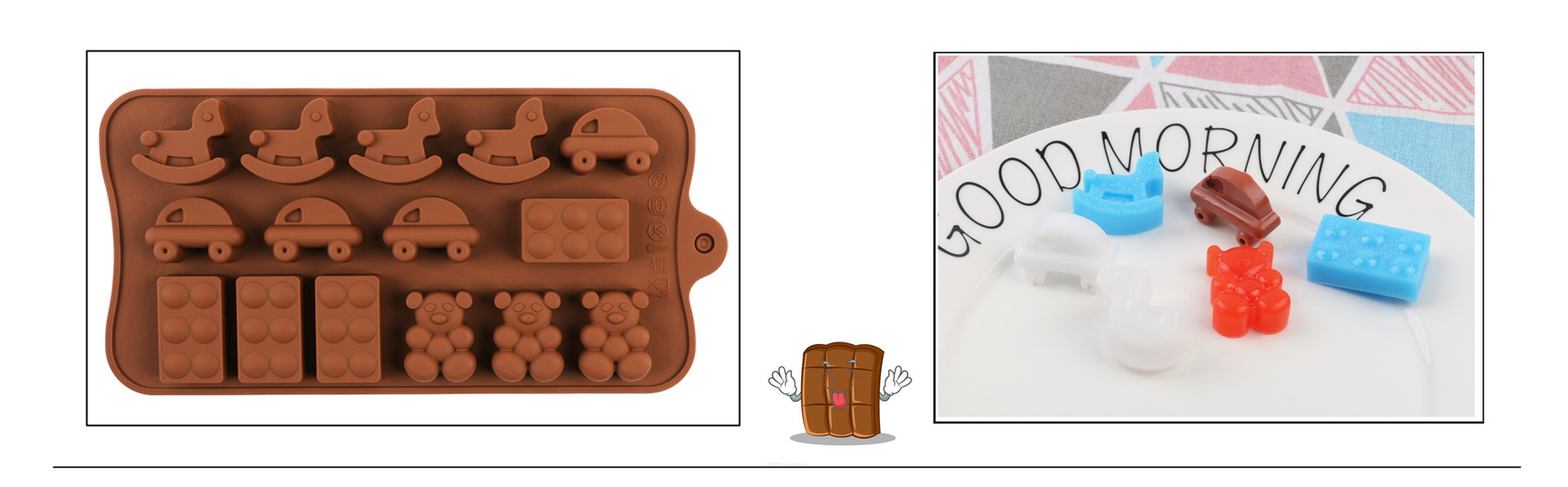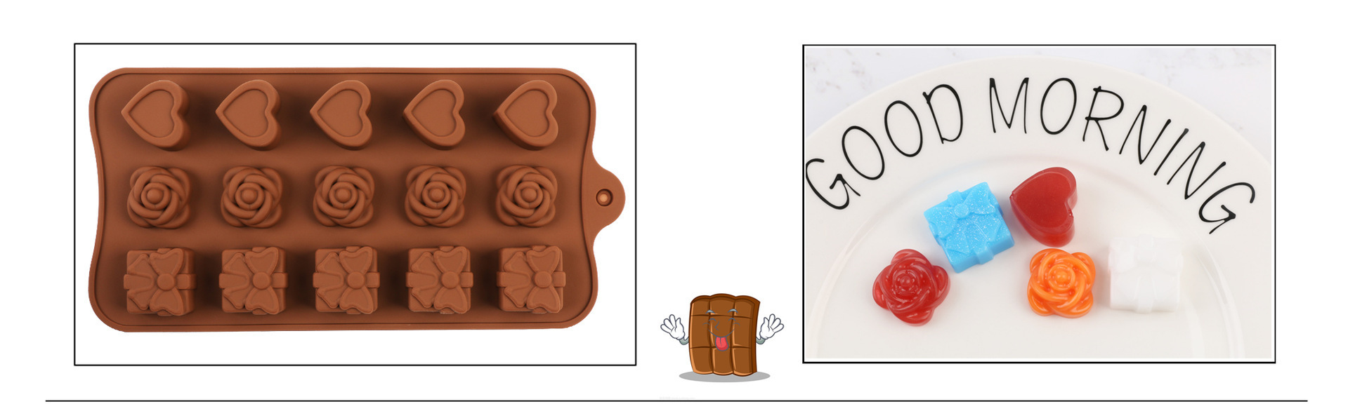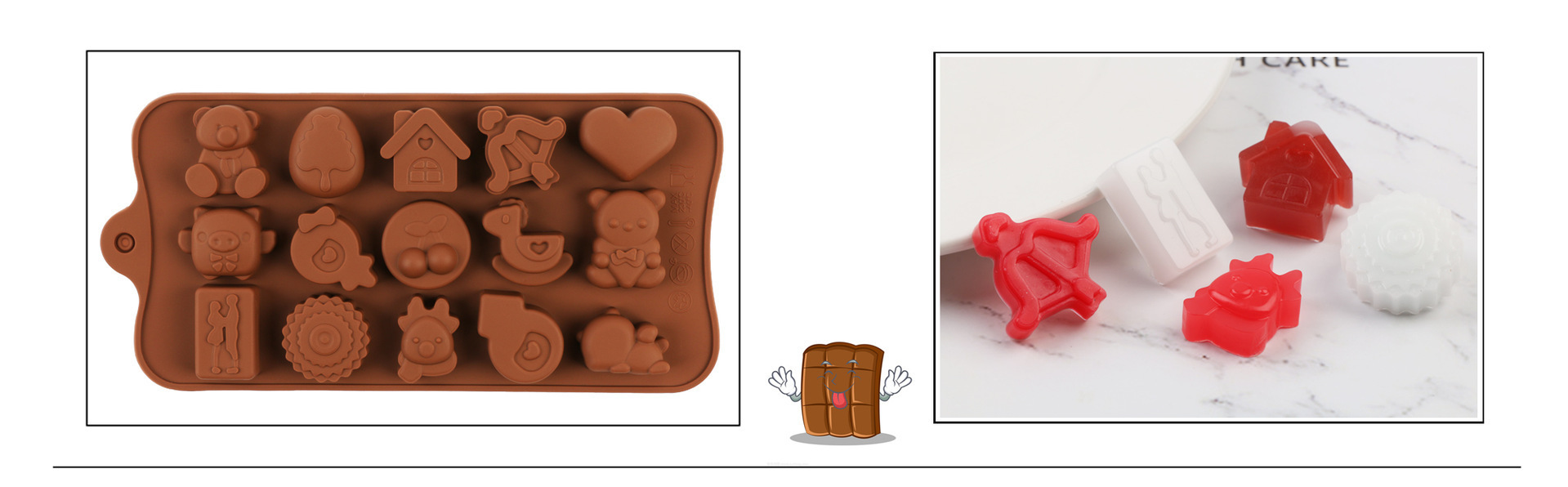 Specifications: 01-14 with 3 high heels, 02-15 with 3 flower shapes, 03-24 with chocolate, 04-15 with swirl, 05-15 with 3 tulips, 06-15 with bow, 07-55 with heart , 08-4 models, 09-15 with stars, 10-14 with 5 stars, 11-28 with emoji, 12-15 with weather, 13-12 with 12 bars of chocolate, 14-15 with toys, 15- 15 with Chinese knot, 16-15 with drop heart shape, 17-letter, 18-8 with animal, 19-15 with swirl heart shape