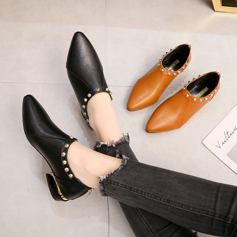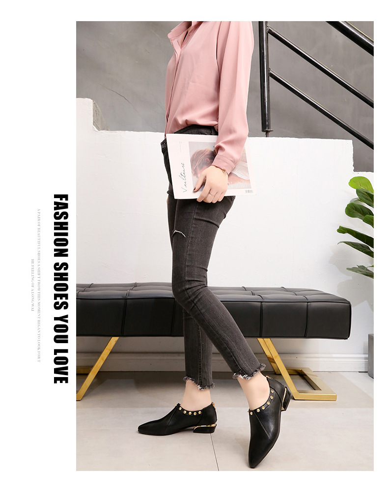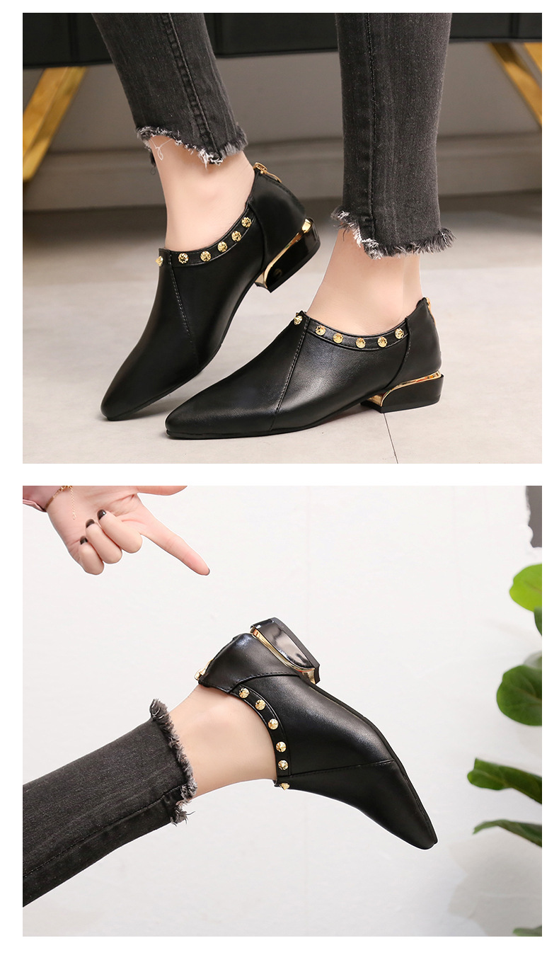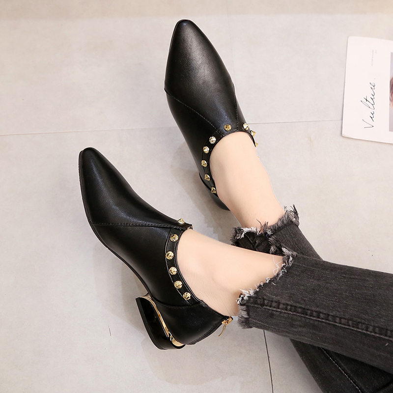 Fashion element:Rivets, thick heel, metal decoration
