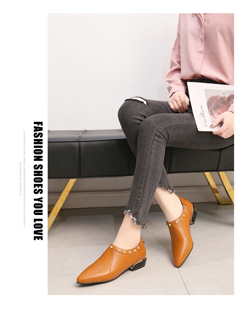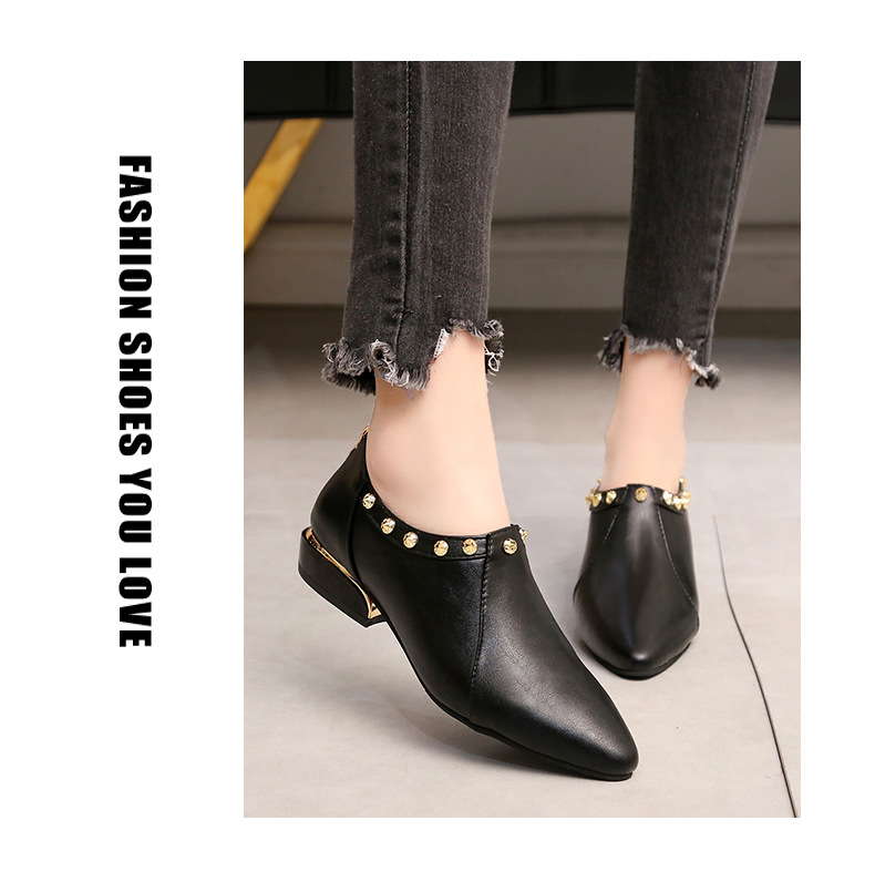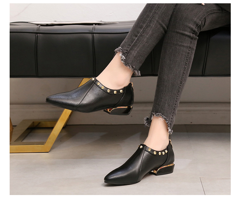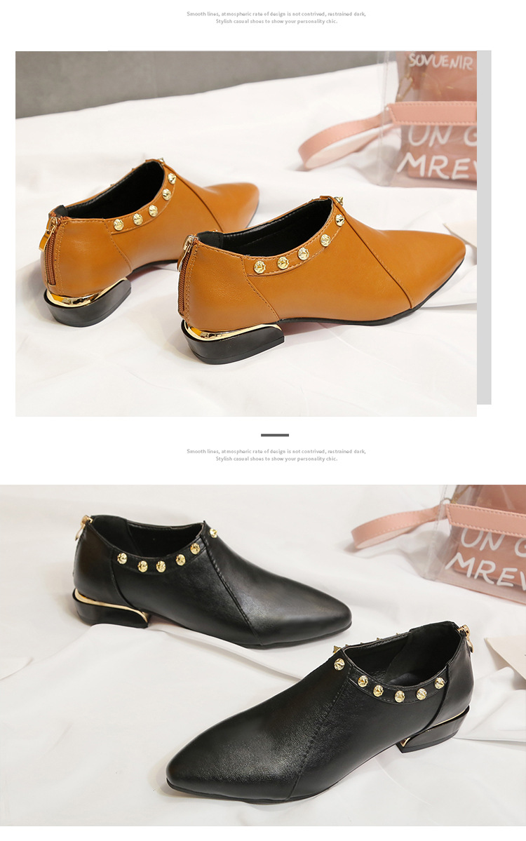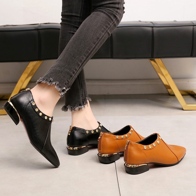 Fashion element:Rivets, thick heel, metal decoration
