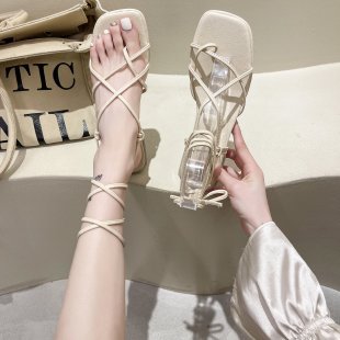 New Style Roman Lace-on-toe Flat Sandals Women Ankle Straps