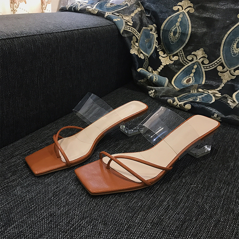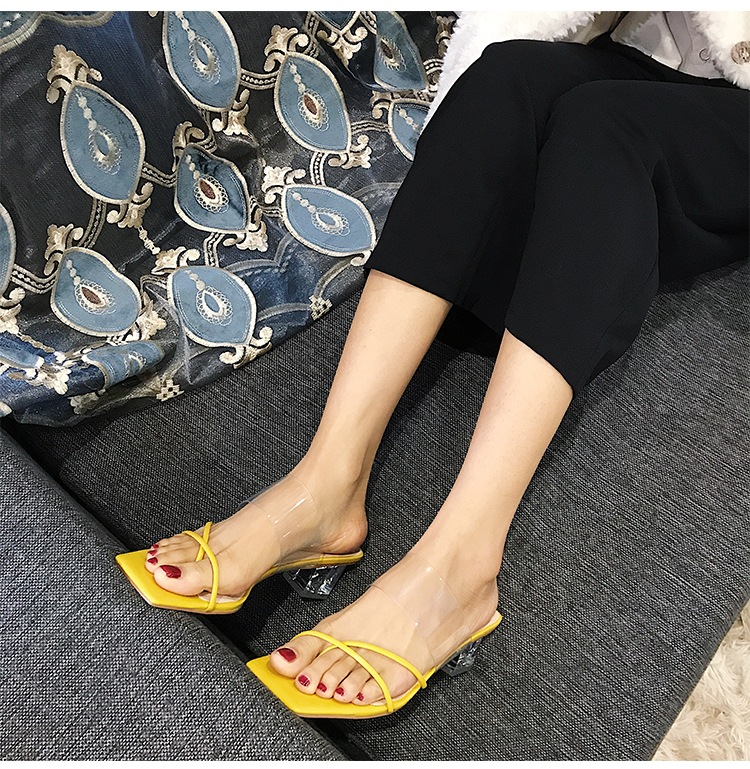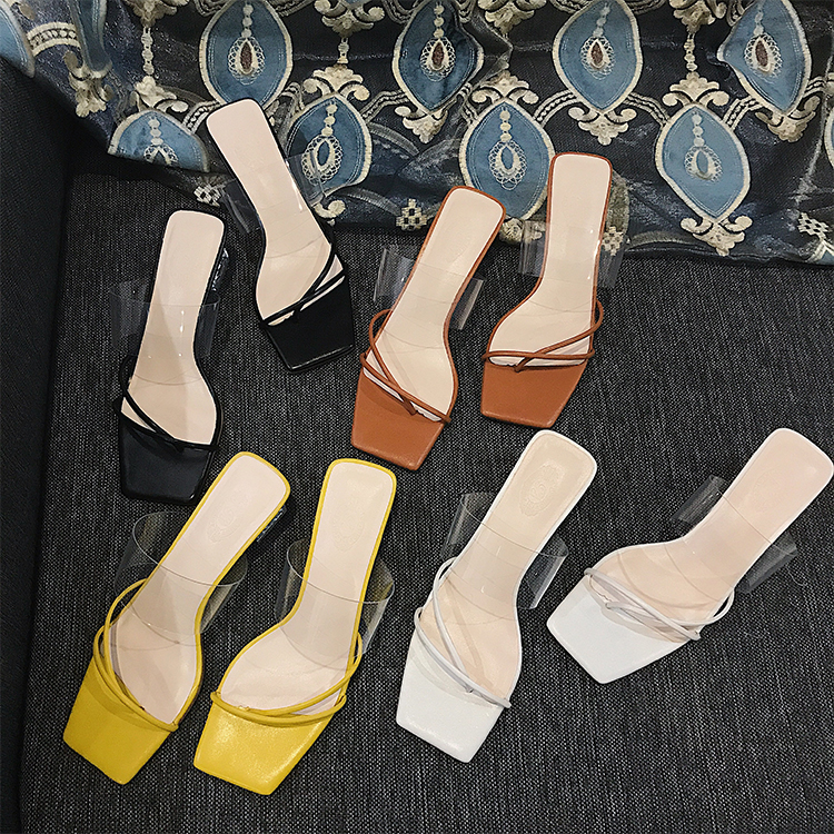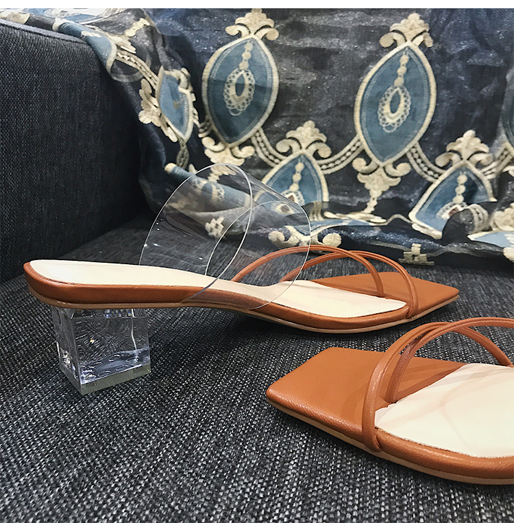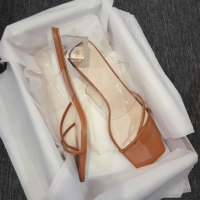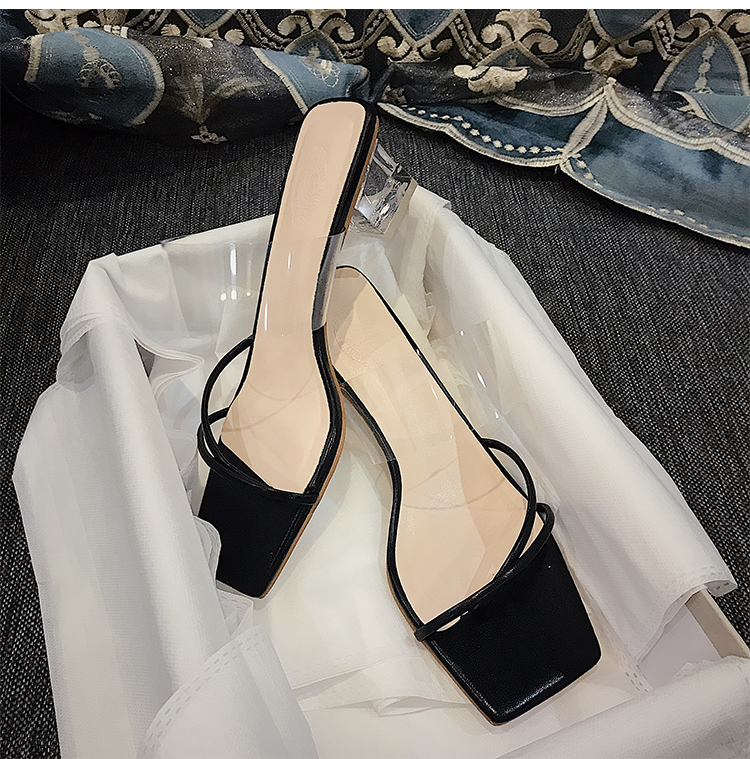 New Style Sandals Women's Thick High-Heeled Sandals With Square Head Transparent