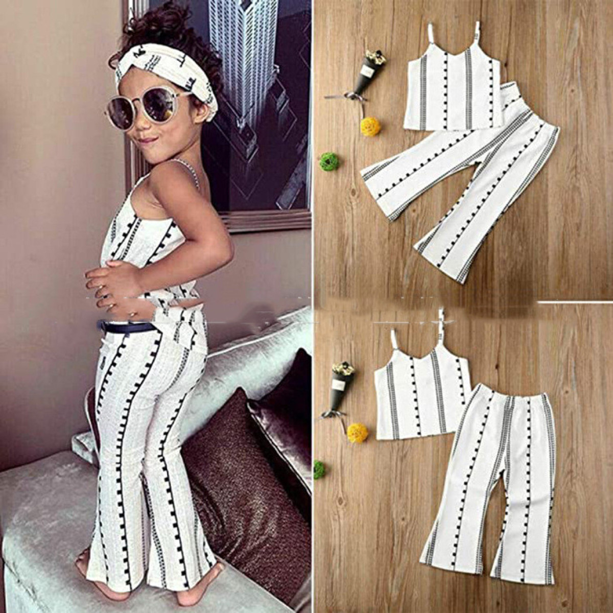 New Style Sling Blouse and Lace-Up Trousers Women's Two-Piece Suit