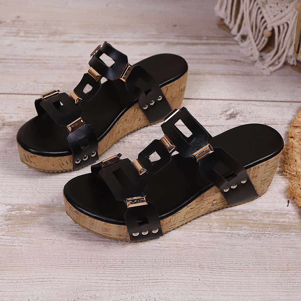 New Style Square-toe Thick-soled Fashionable Slide Sandals With A Square Buckle