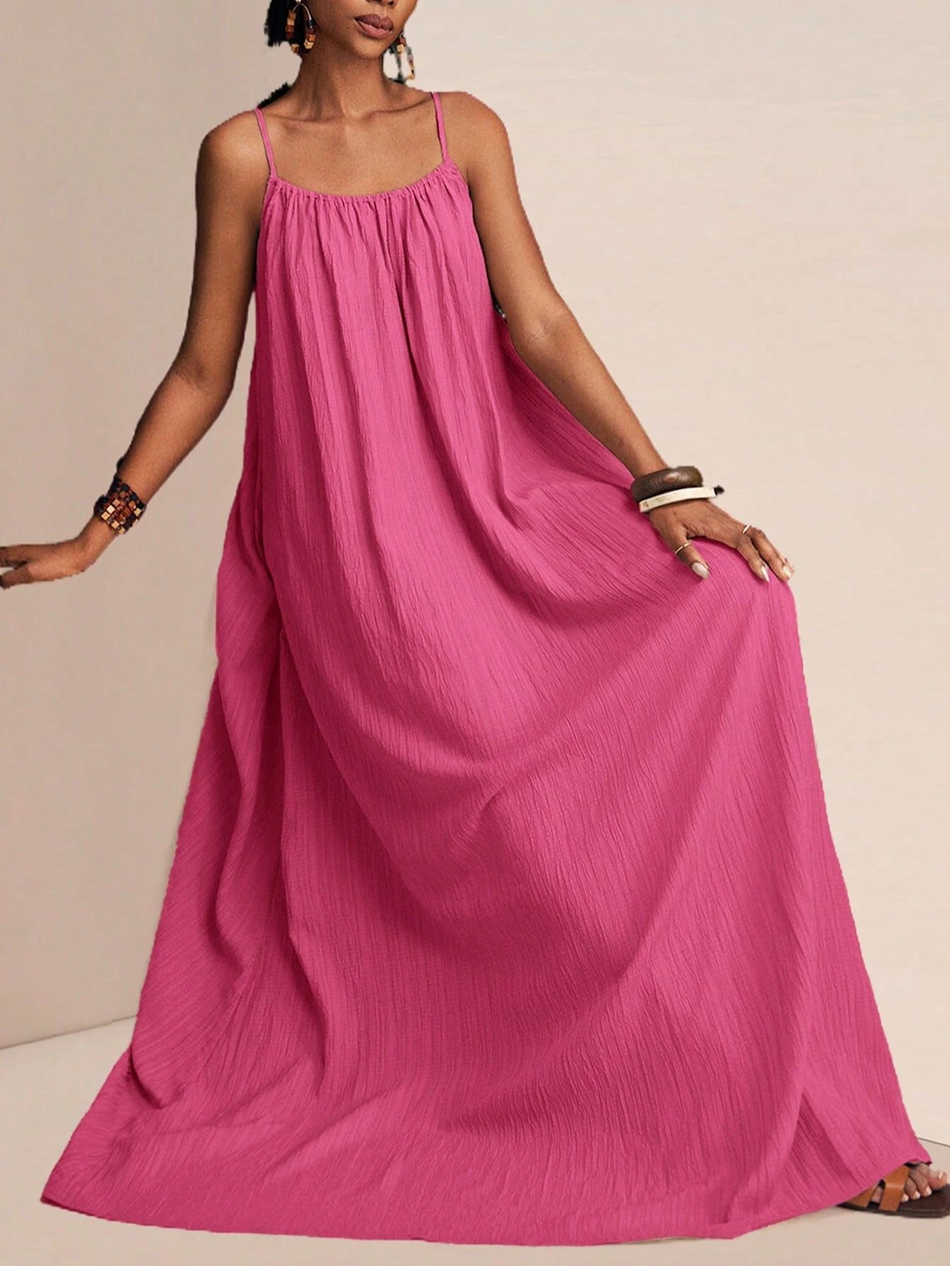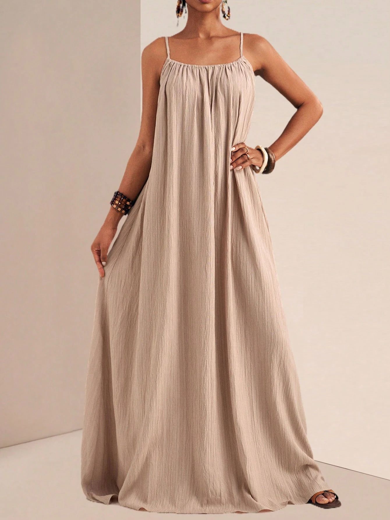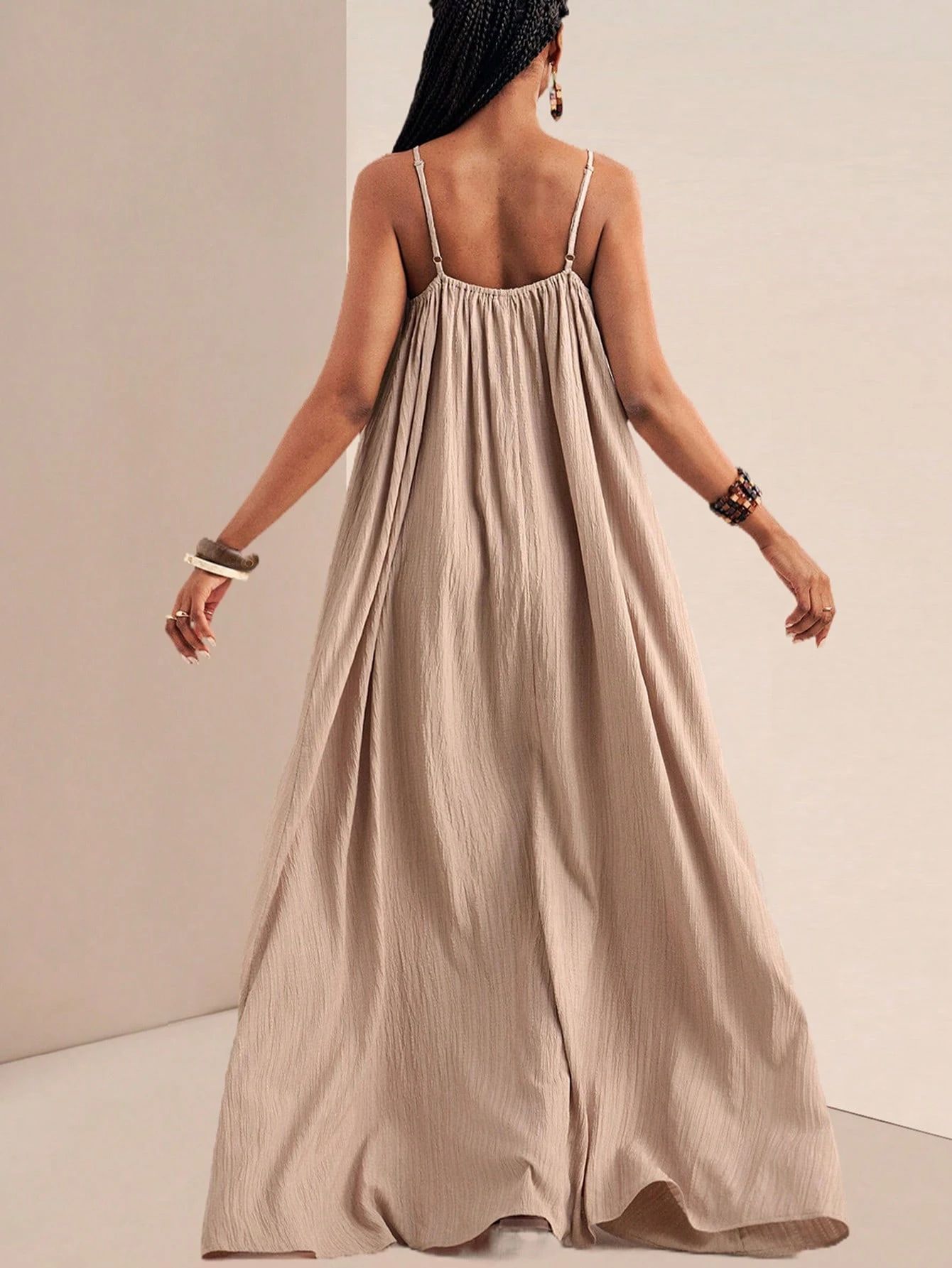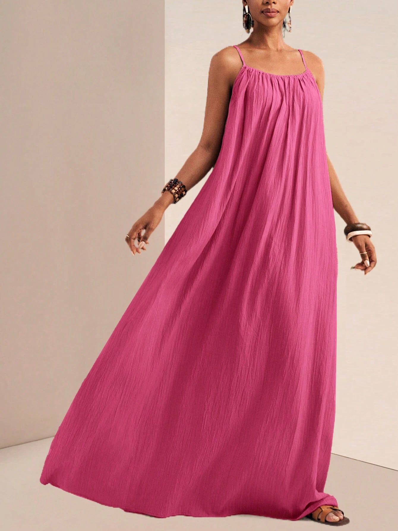 New Stylish And Elegant Solid-color Slip Maxi Dress