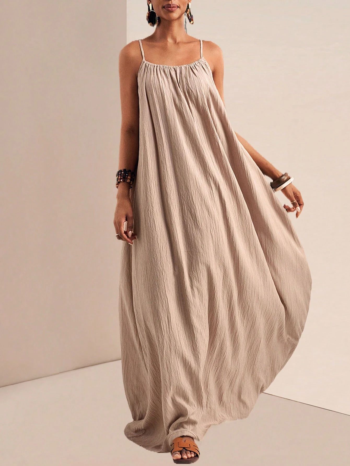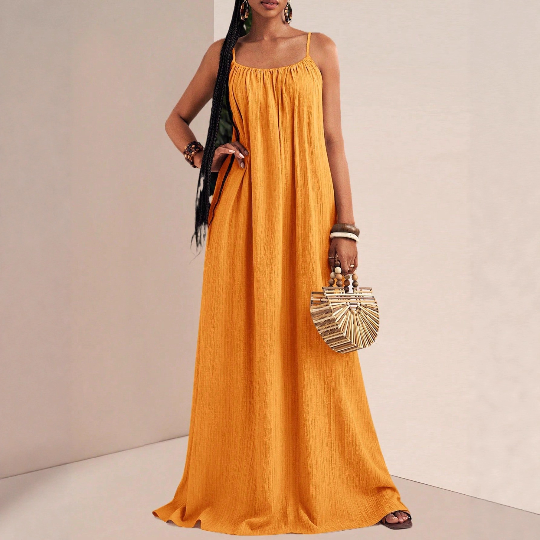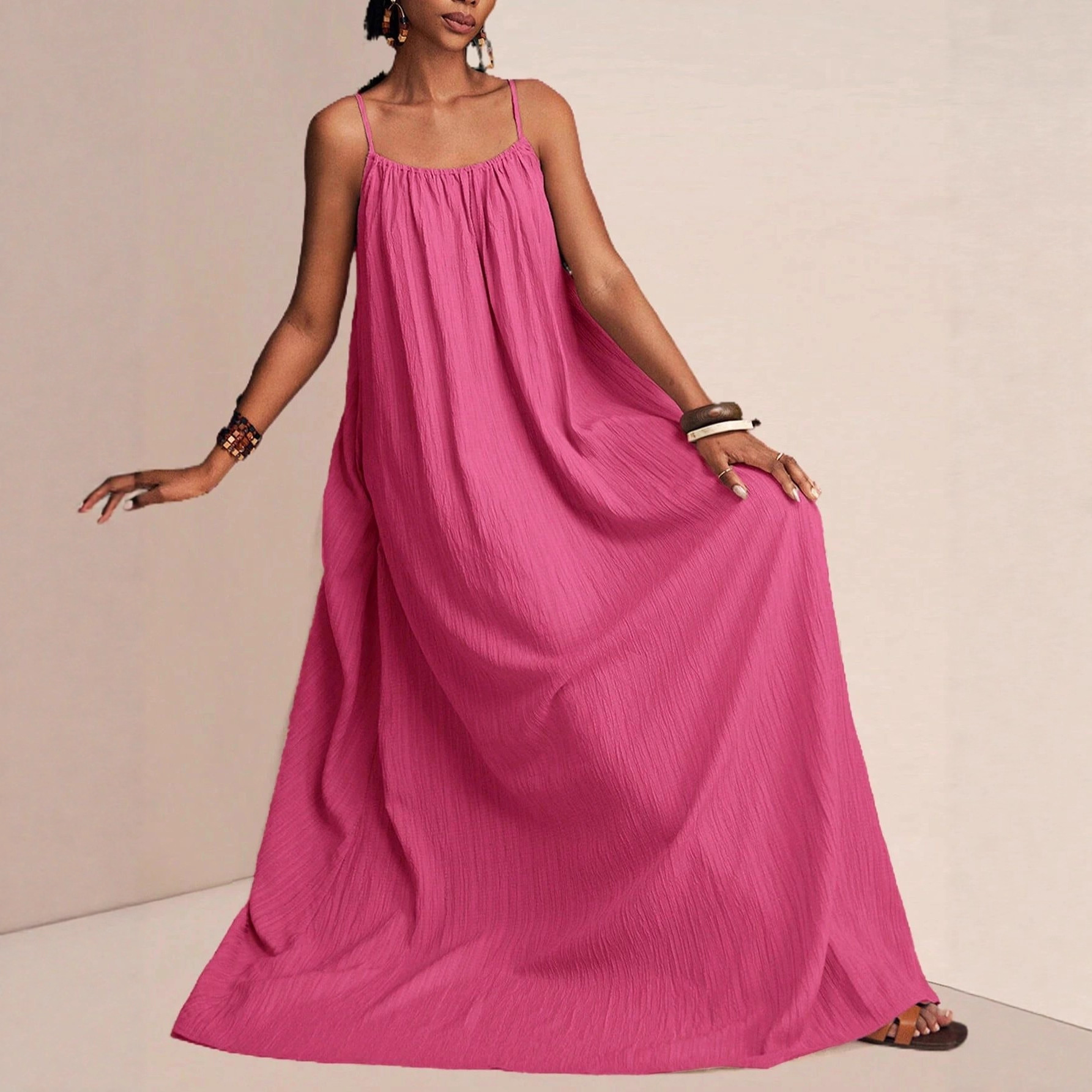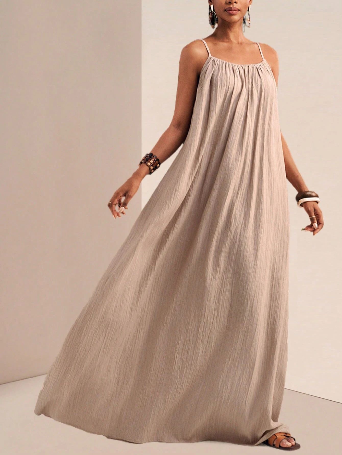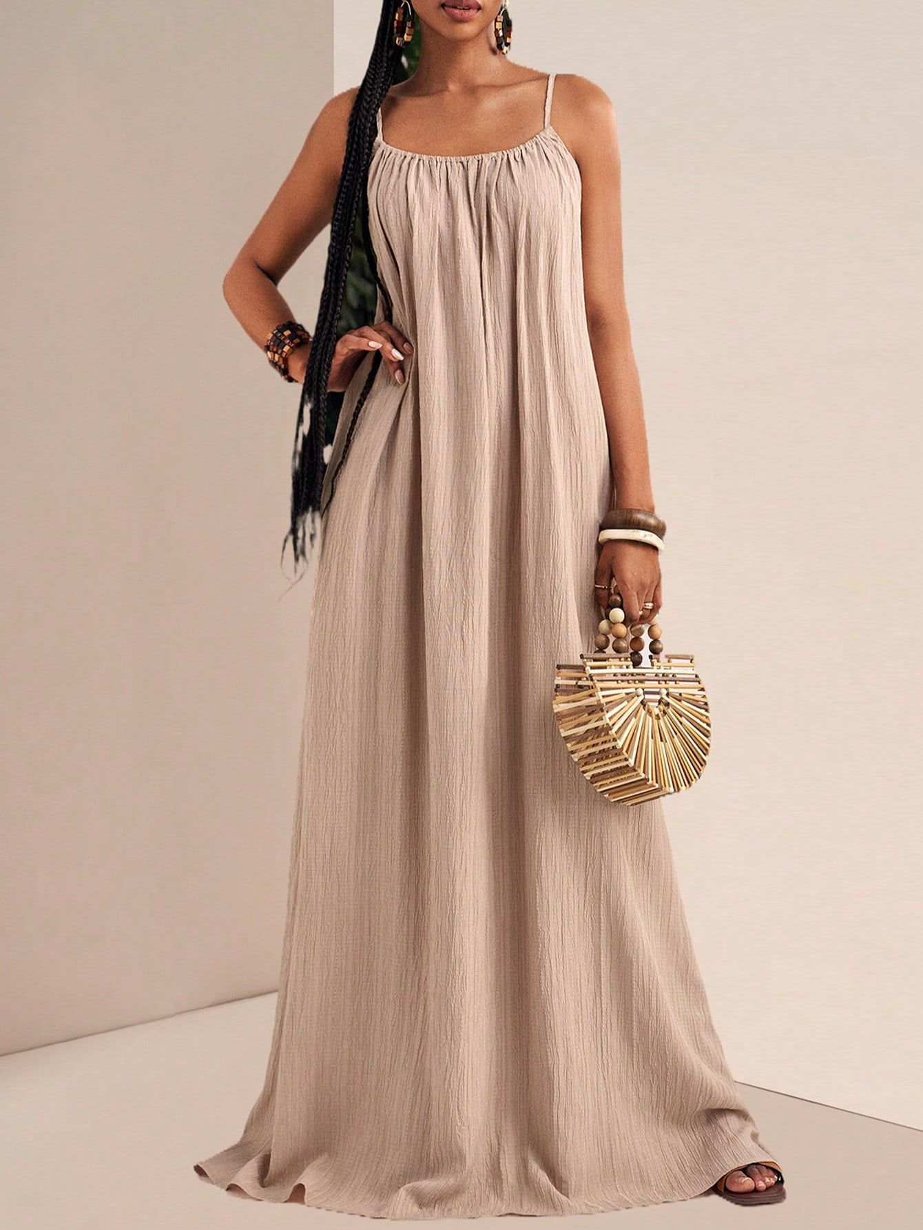 New Stylish And Elegant Solid-color Slip Maxi Dress
