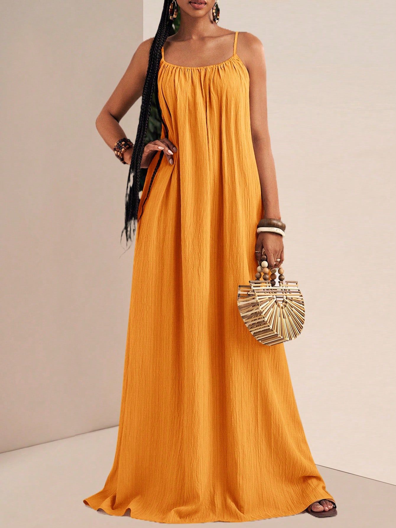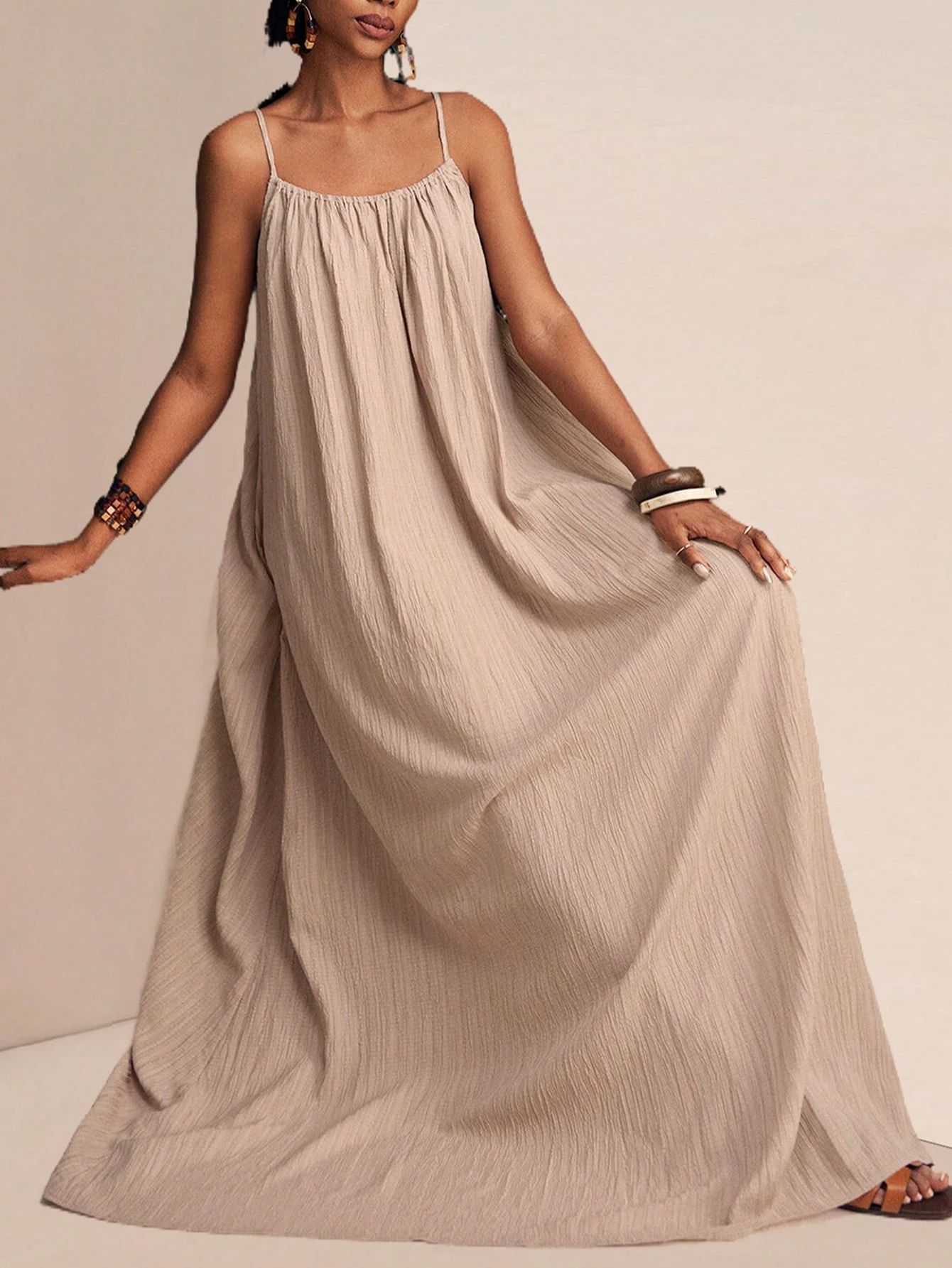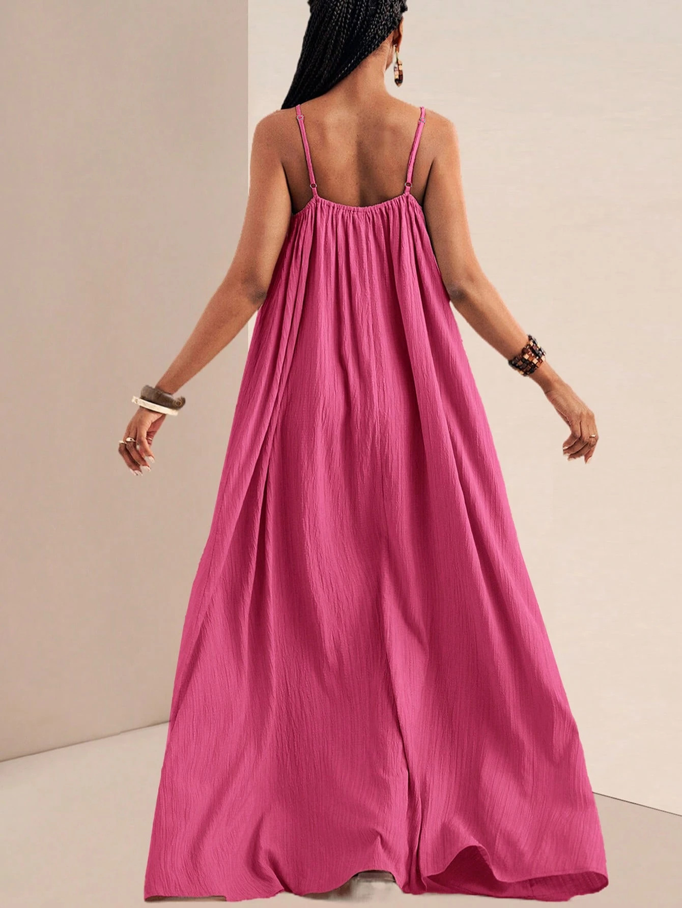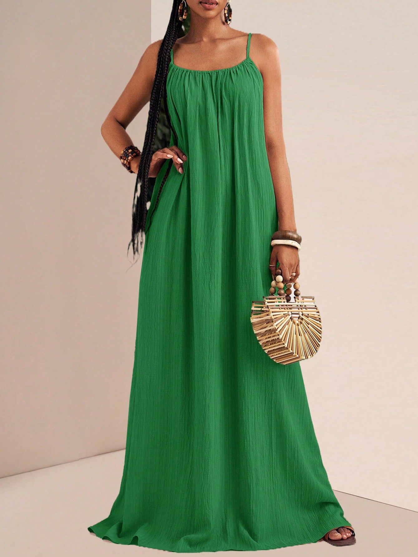 New Stylish And Elegant Solid-color Slip Maxi Dress