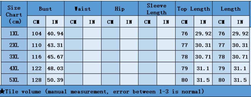 Sizes: 1XL, 2XL, 3XL, 4XL, 5XL