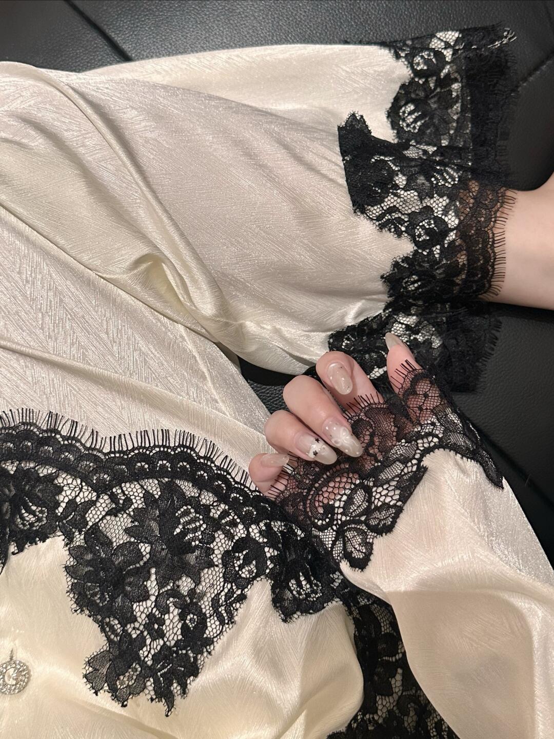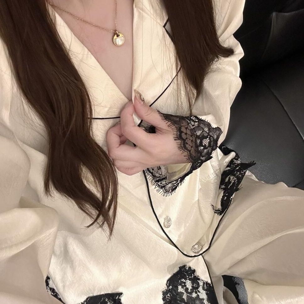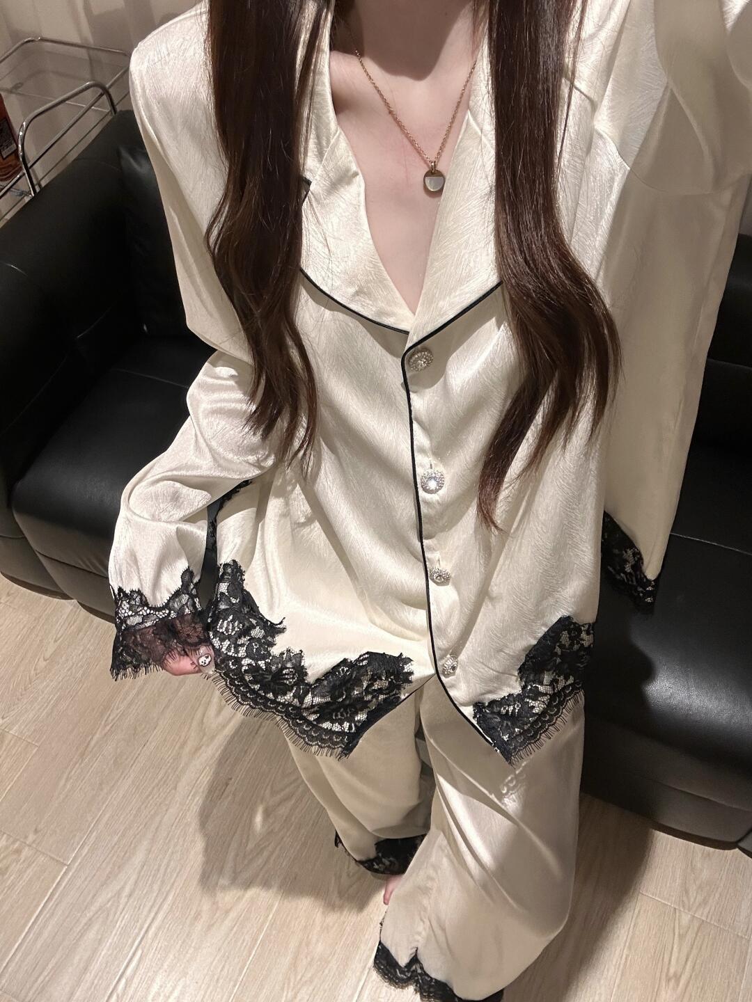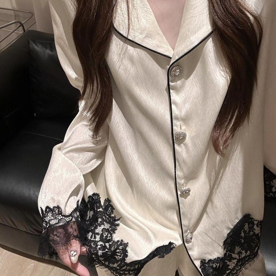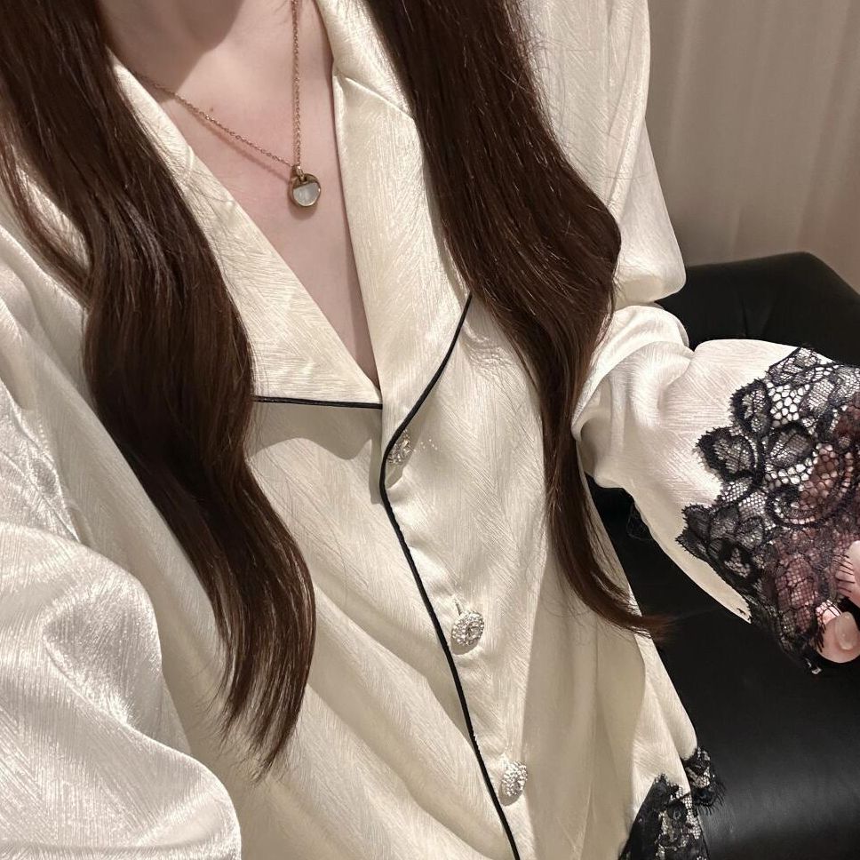 Color: White Lace Long-Sleeve Pantsuit [Premium Ice Silk]
