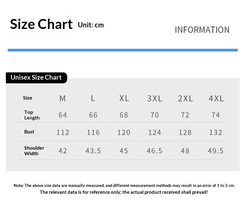 Sizes: M, L, XL, 2XL, 3XL, 4XL