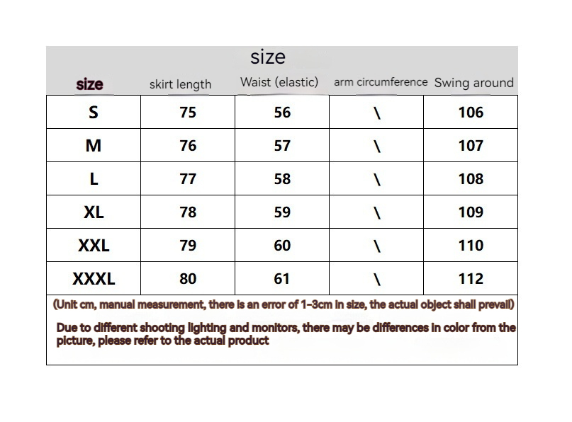 1. Asian sizes are 1 to 2 sizes smaller than European and American people. Choose the larger size if your size between two sizes. Please allow 2-3cm differences due to manual measurement. 2. Please check the size chart carefully before you buy the item, if you don't know how to choose size, please contact our customer service. 3.As you know, the different computers display colors differently, the color of the actual item may vary slightly from the following images.