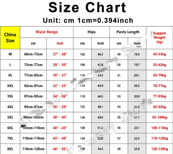 Sizes: M, L, XL, 2XL, 3XL, 4XL, 5XL, 6XL, 7XL, 8XL