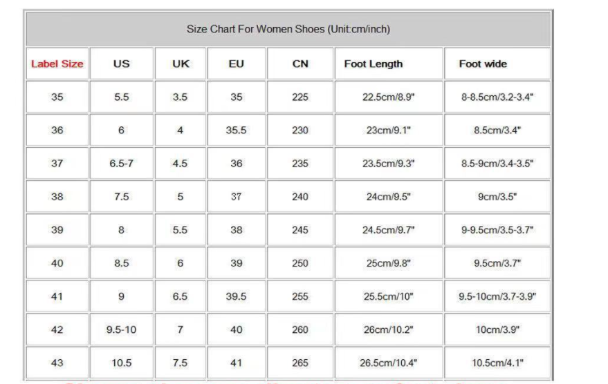 Size: 36, 37, 38, 39, 40, 41, 42, 43