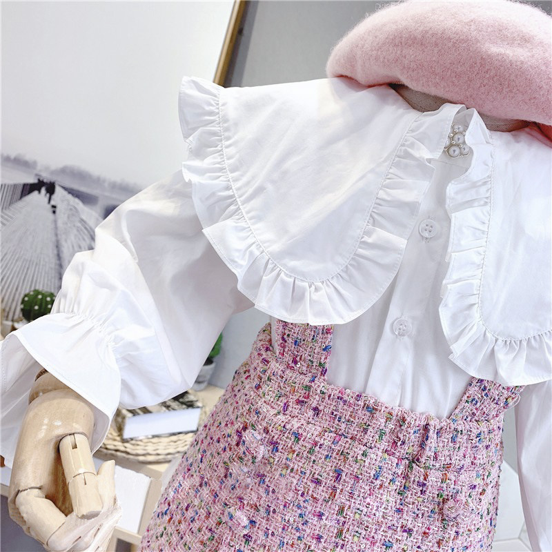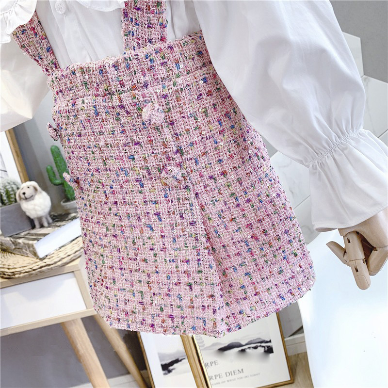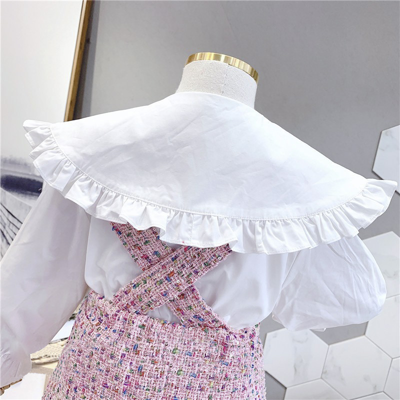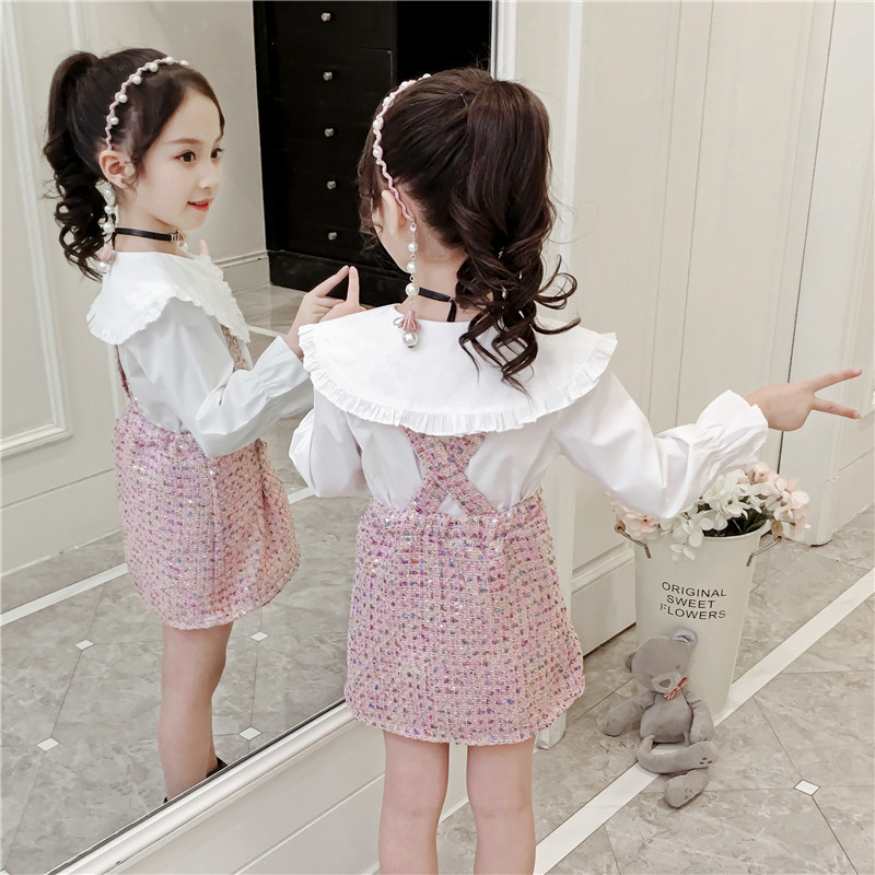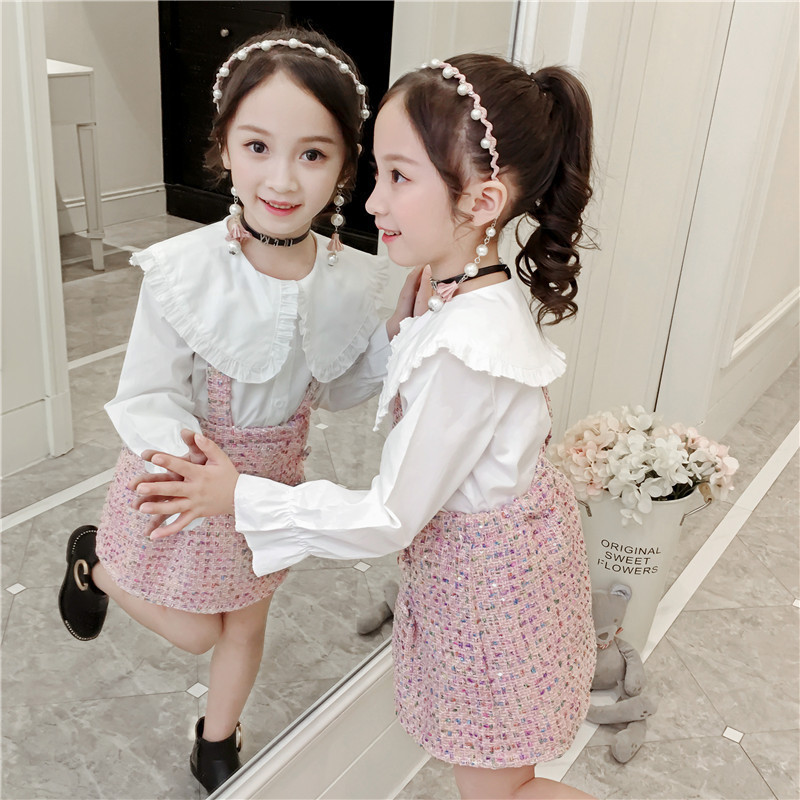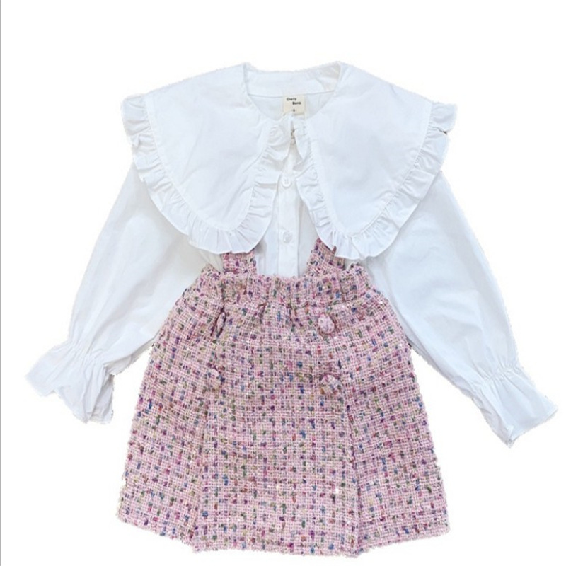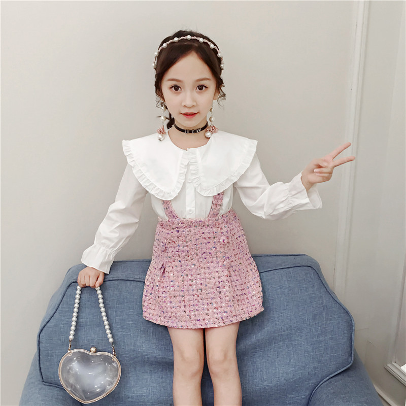 Color: sWQ123 white lapel shirt + pink short skirt with straps