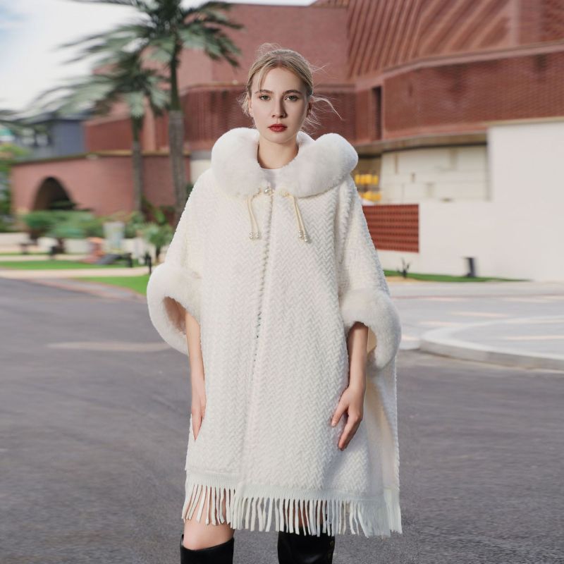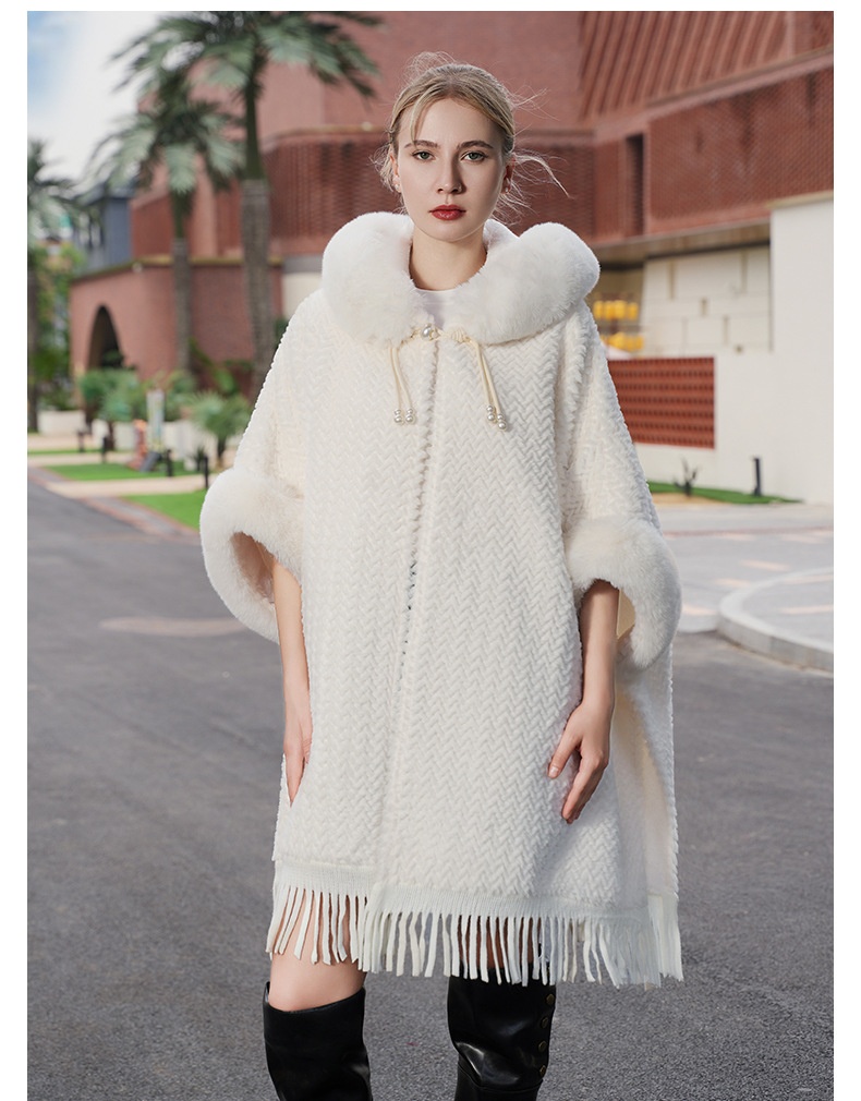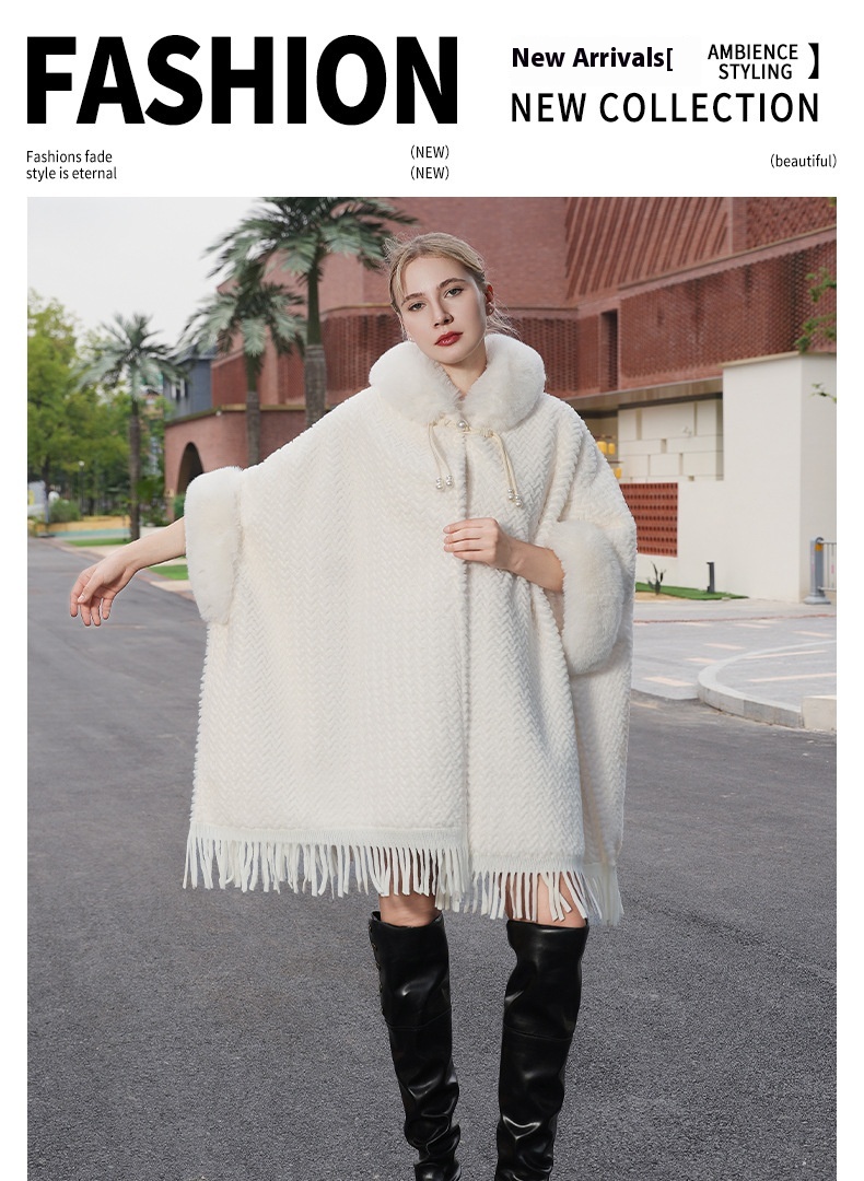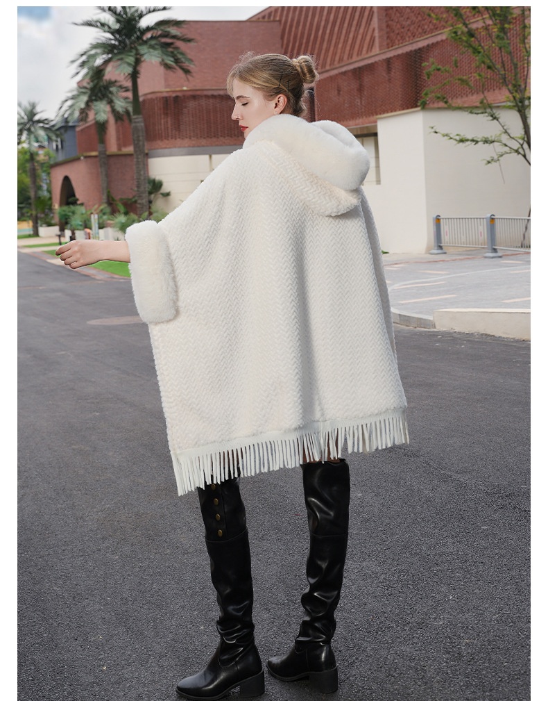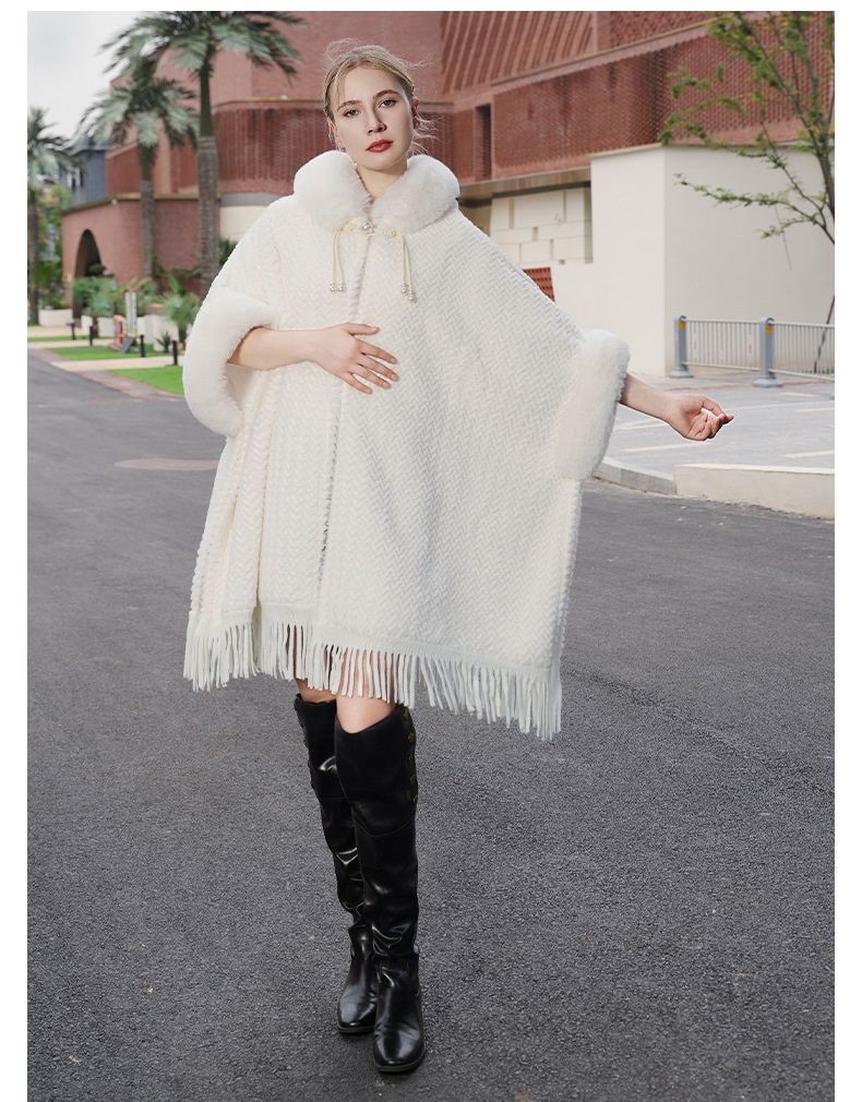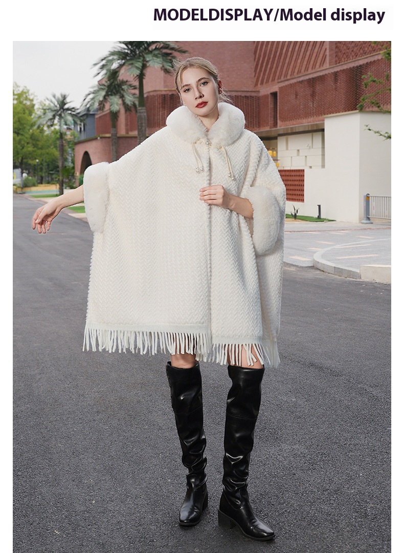 New Tassel Solid Color Cape Knitted Thick Mid-length Shawl