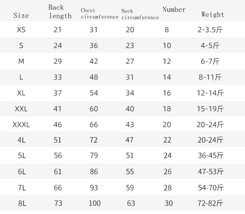 Size: XS, S, M, L, XL, 2L, 3L, 4L, 5L, 6L, 7L, 8L