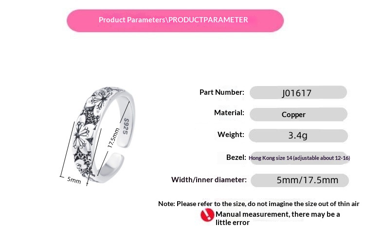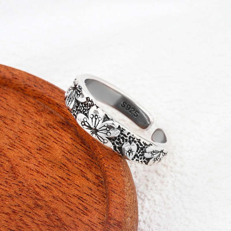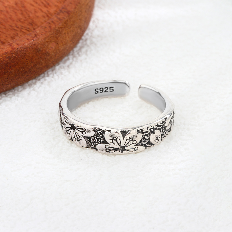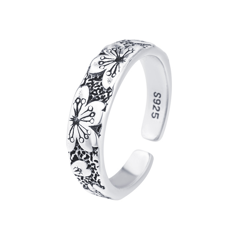 New Thai Silver Retro Cherry Blossom Ring