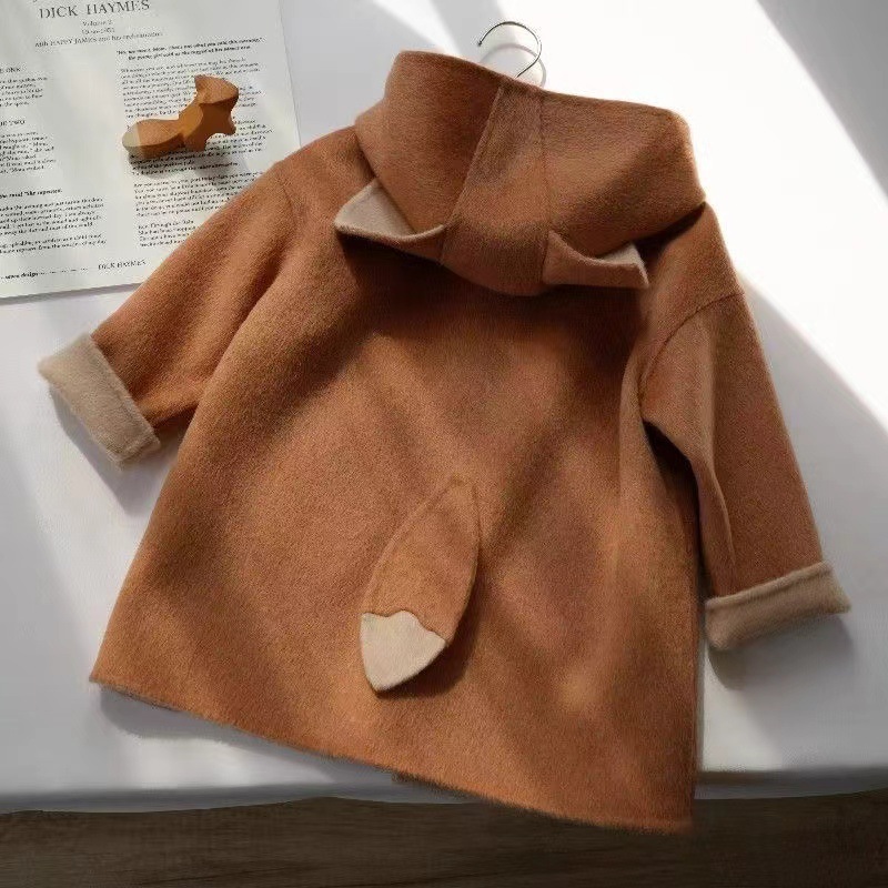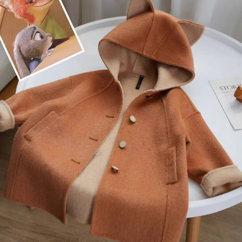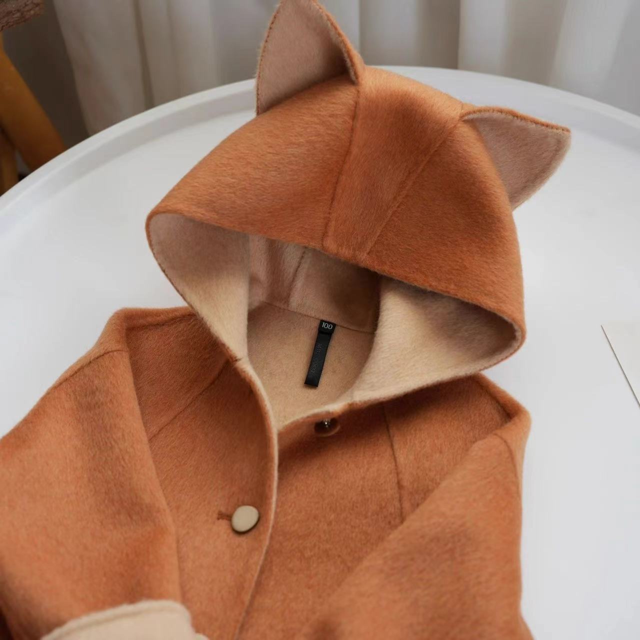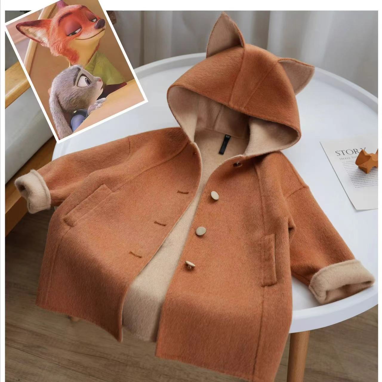 New Thick Mid-length Woolen Coat Children's Cartoon Cute Fox Woolen Coat