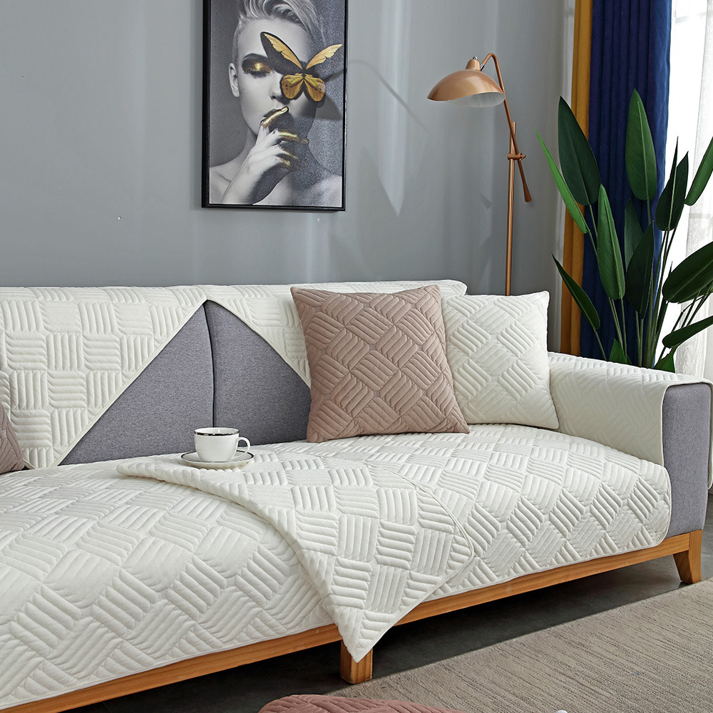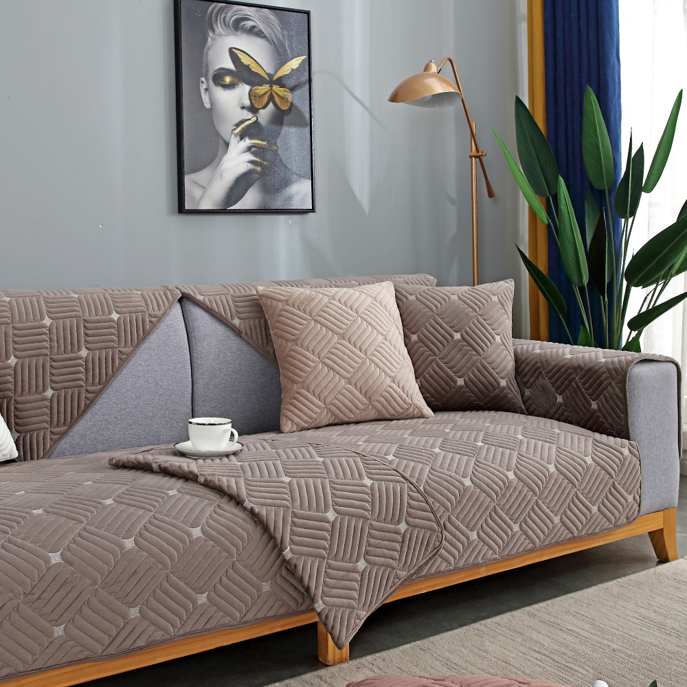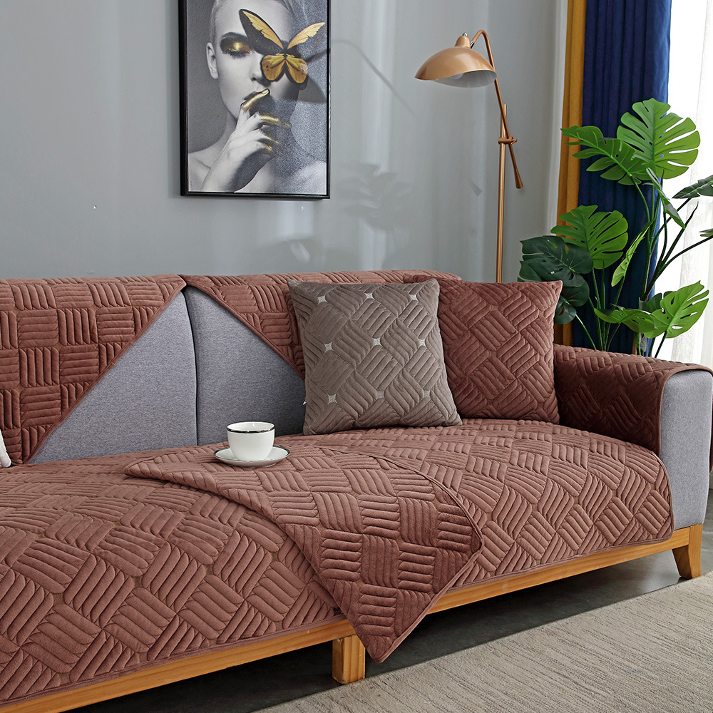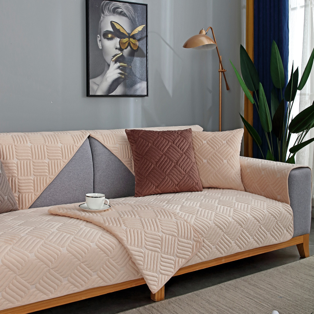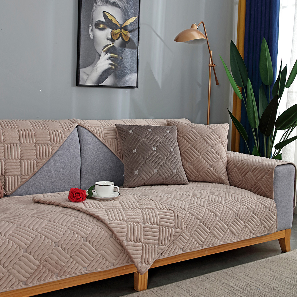 New thick solid color plush sofa cushion for autumn and winter, solid wood fabric sofa non-slip cushion cover cover back towel