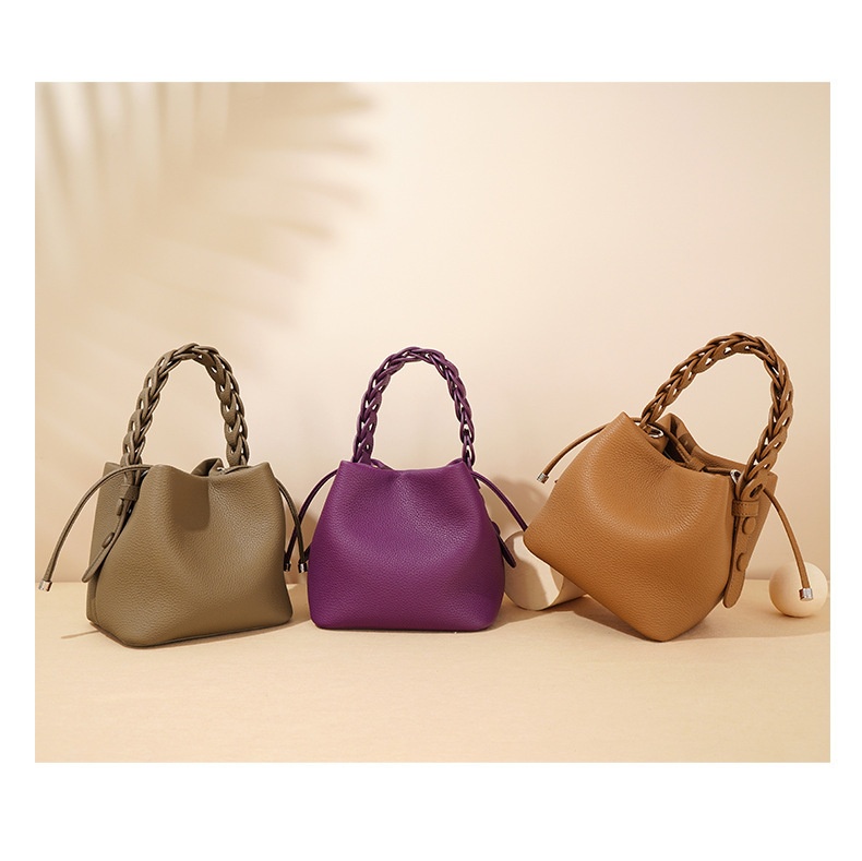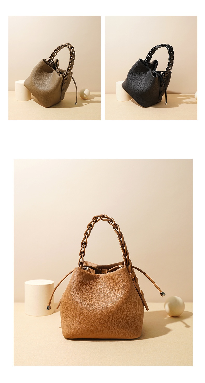 New Top Layer Cowhide Bucket Bag Spring Genuine Leather All-matching