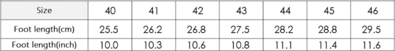 Sizes: 40, 41, 42, 43, 44, 45, 46