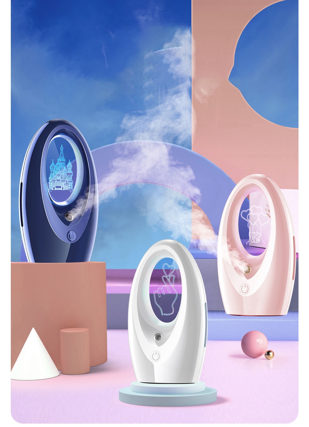 Color : Pearl White/Heart, Cherry Blossom/Love Balloon, Navy Blue/Castle