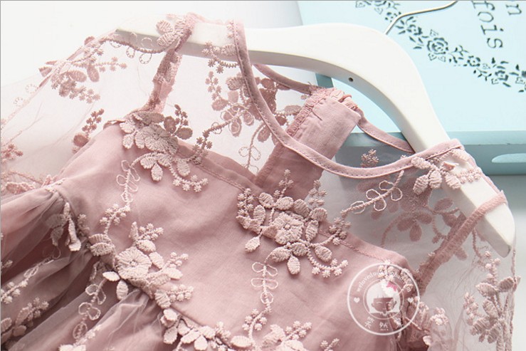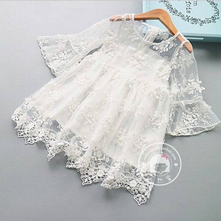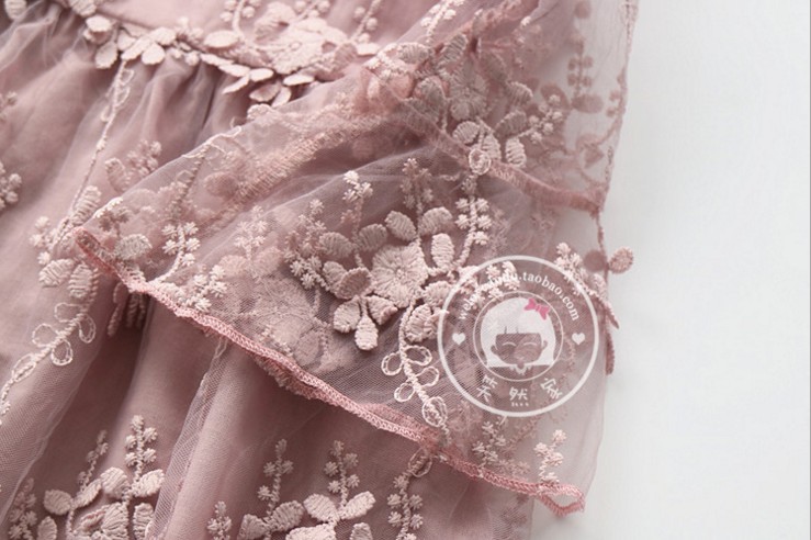 2017 new version of Korean foreign trade children's clothing, children's princess skirt, lace trumpet sleeve embroidery, soft skirt, girl dress