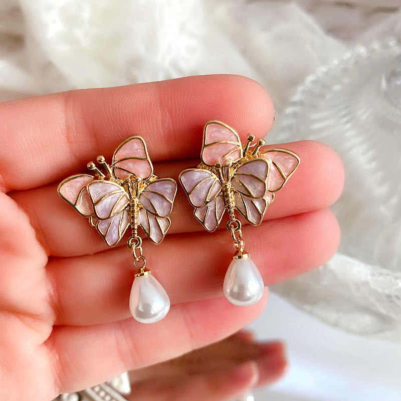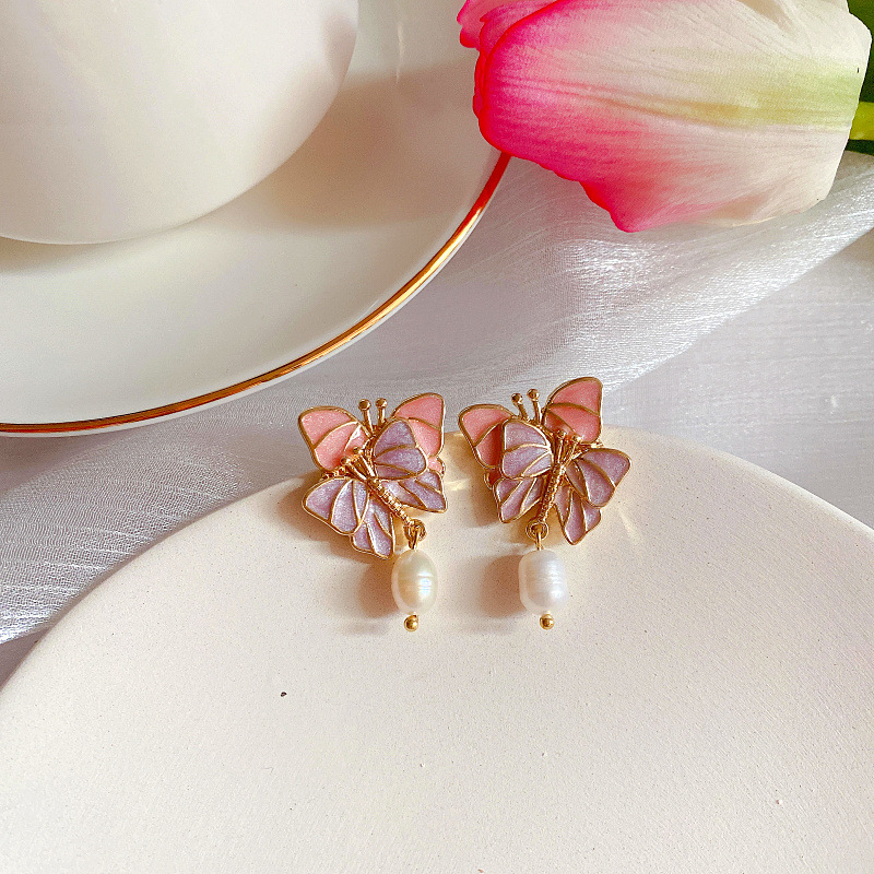 Color: butterfly brooch imitation pearls, silver needle stud earrings imitation pearl, freshwater pearl brooch, silver needle freshwater pearl stud earrings