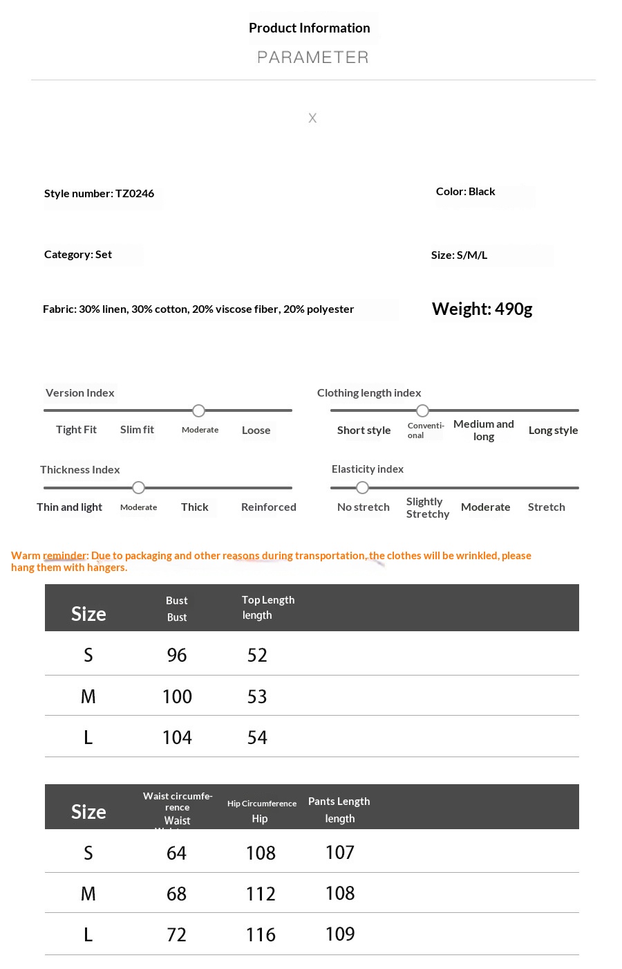 Product information: