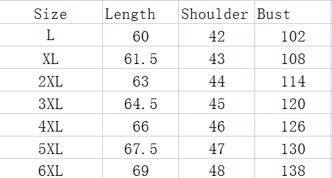 Size: L, XL, 2XL, 3XL, 4XL, 5XL, 6XL