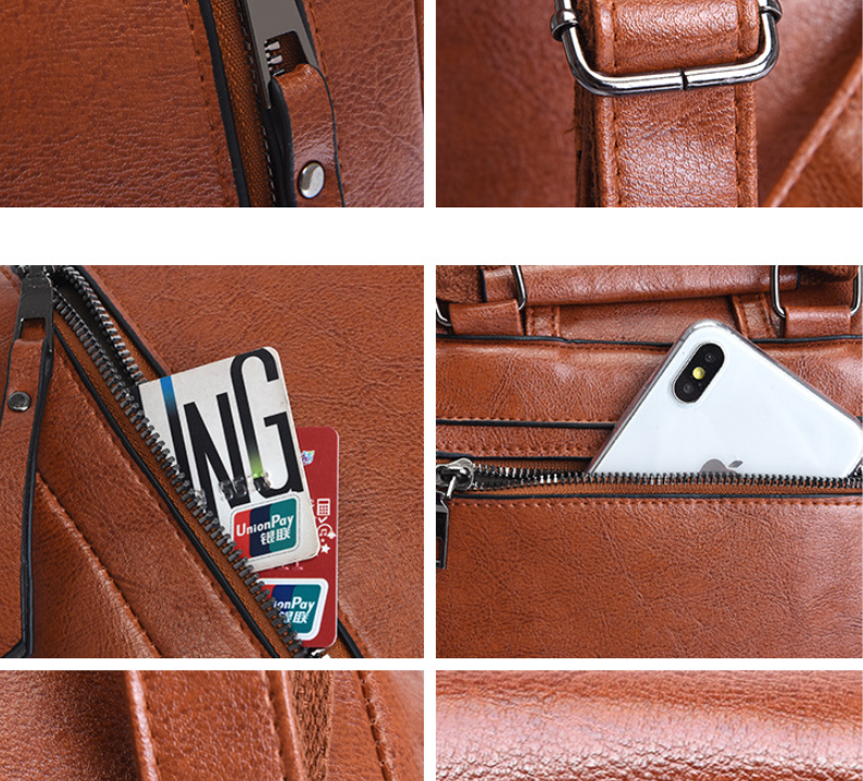 The internal structure of the bag: zipper pocket, mobile phone pocket, ID pocket, sandwich zipper pocket, computer pocket, camera pocket