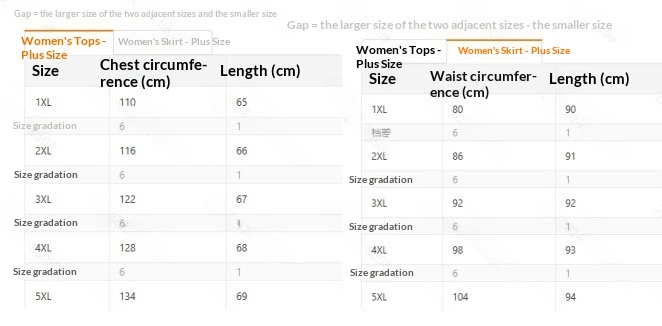 Size: 1XL, 2XL, 3XL, 4XL, 5XL