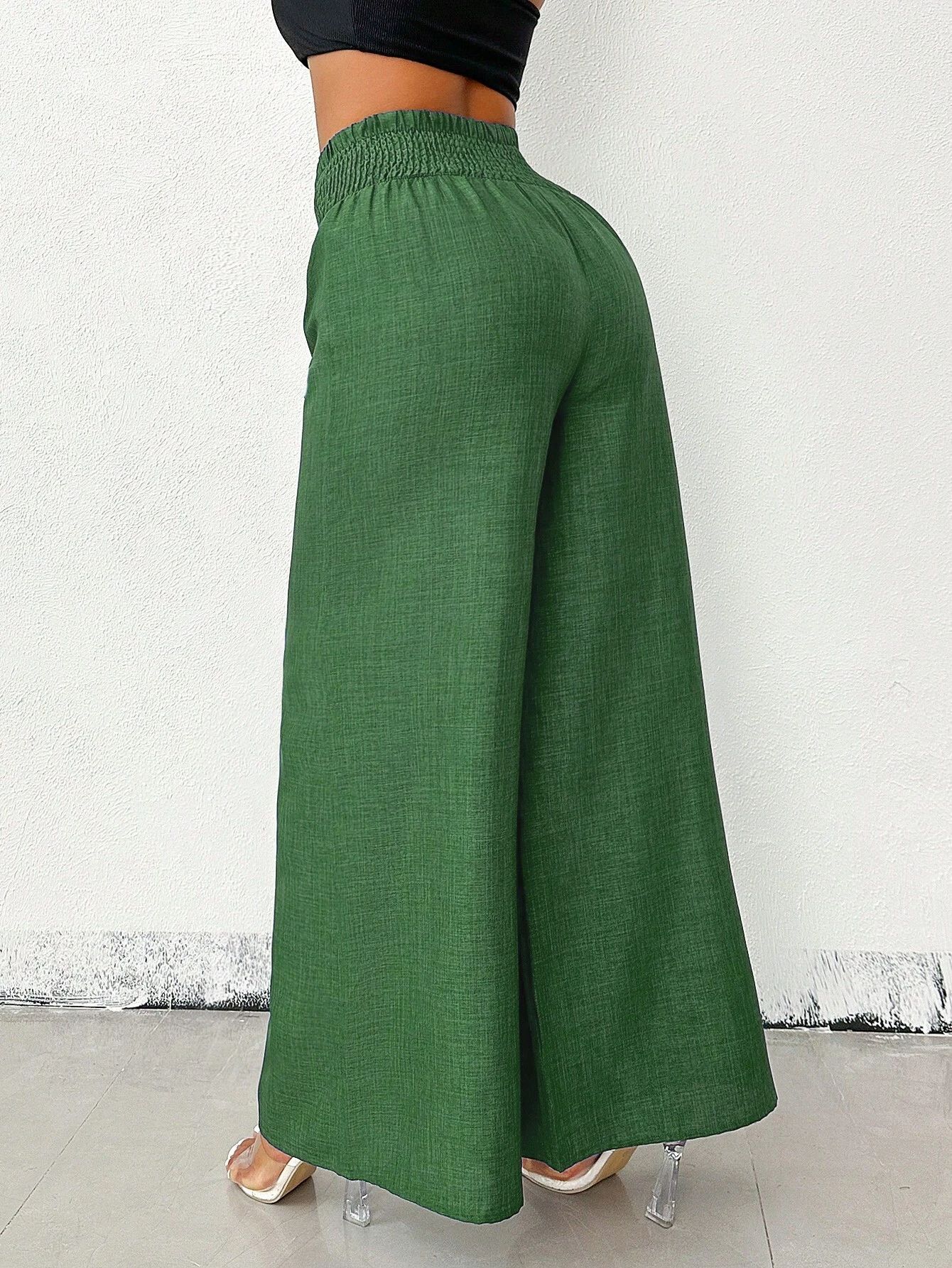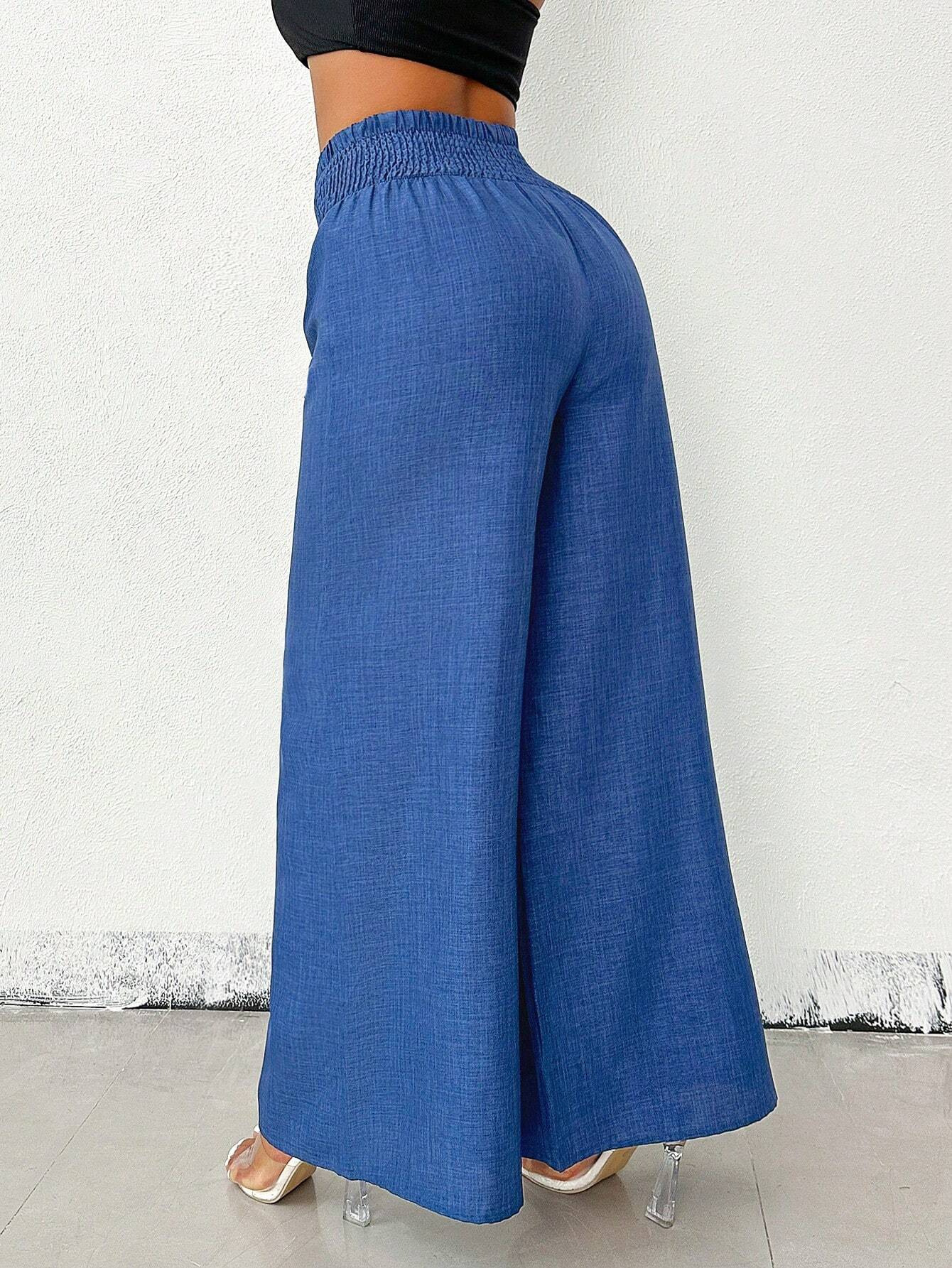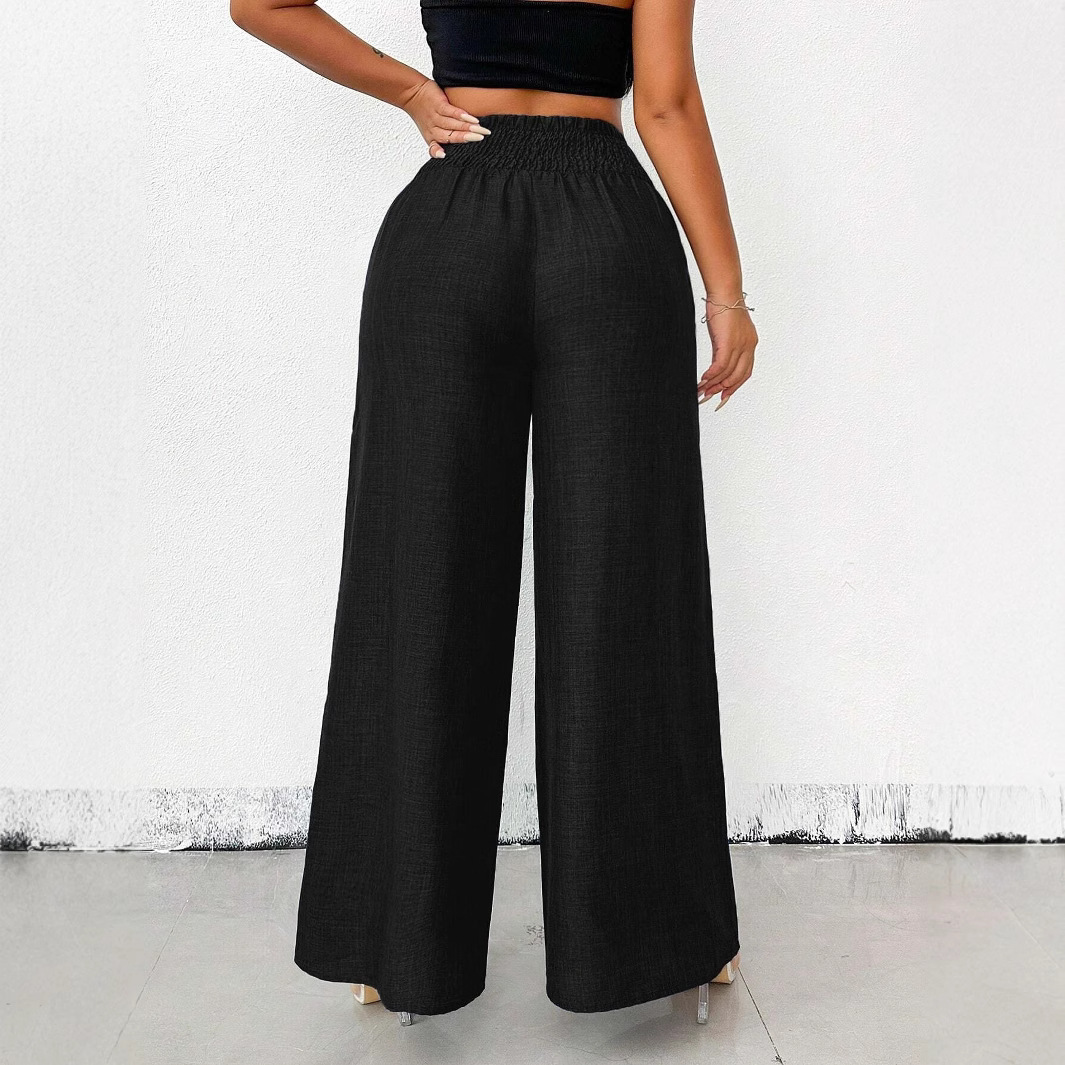 New Womens Fashionable Retro High-Waist Elastic Drapey Wide-Leg Long Pants For Women