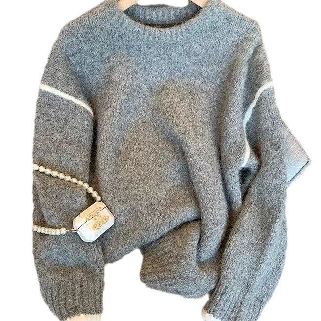 New Womens Loose-fitting Long-sleeve Crew-neck Sweater
