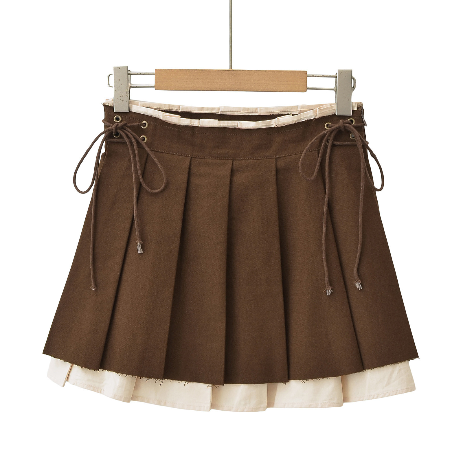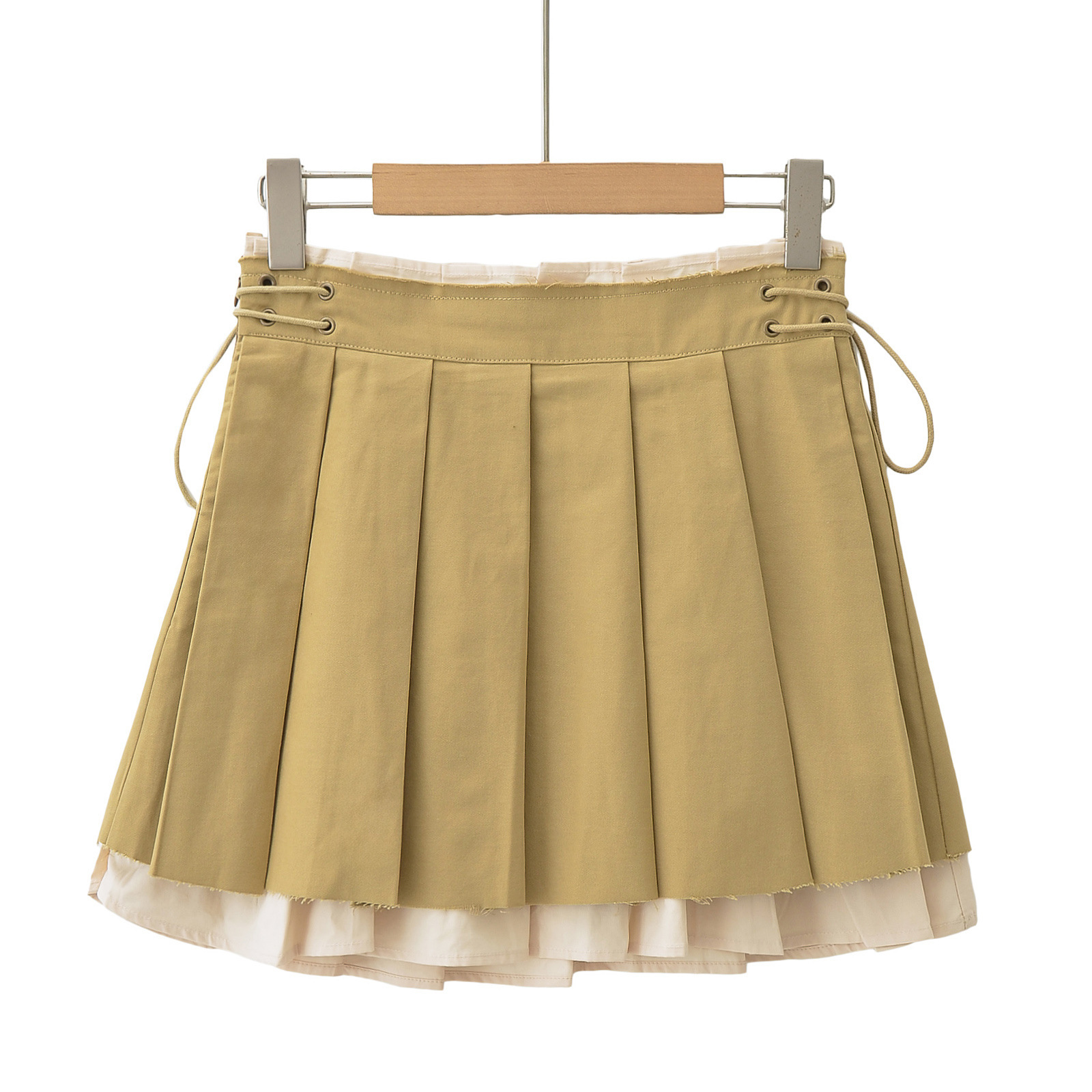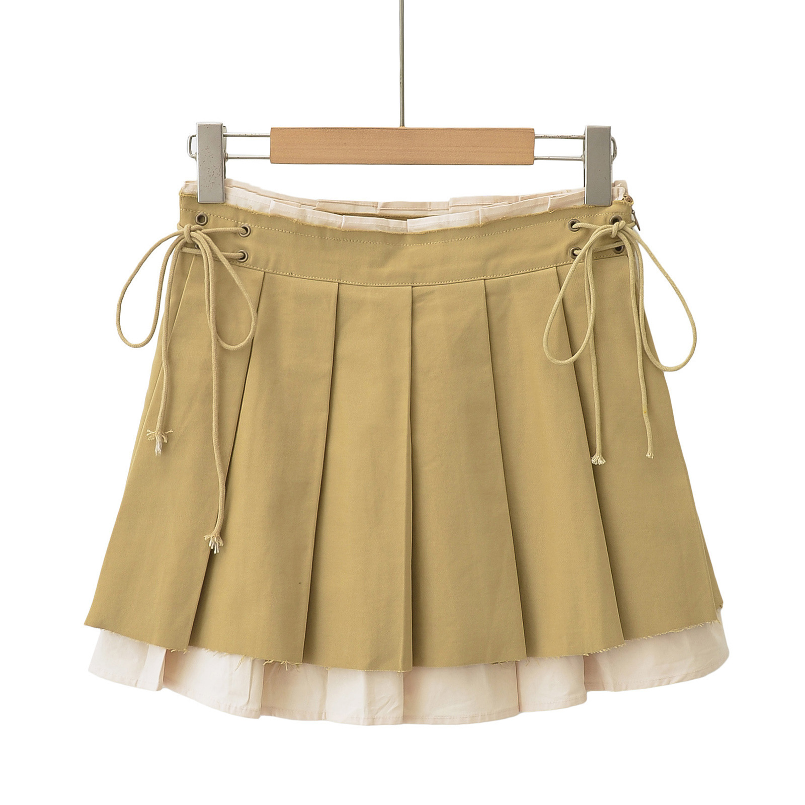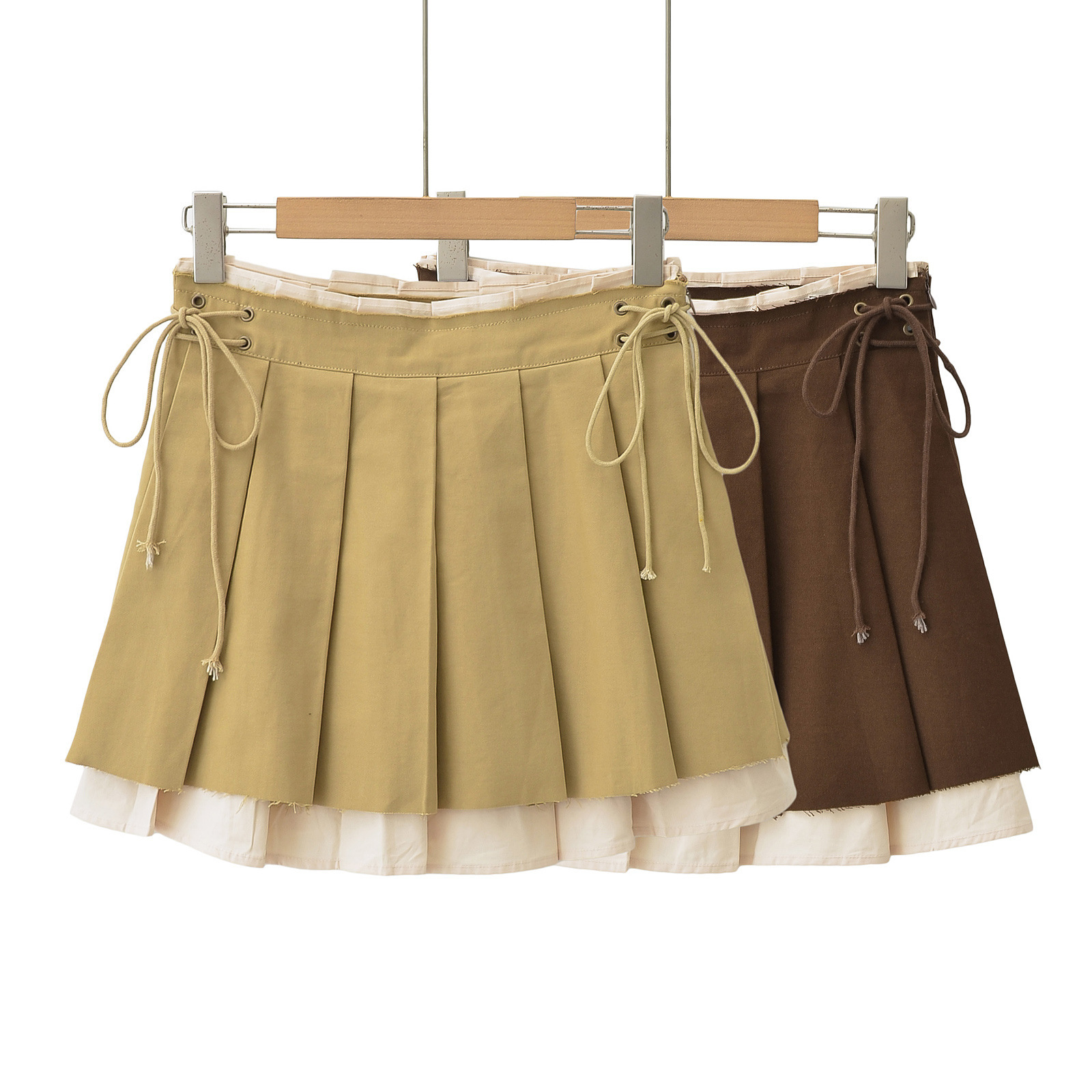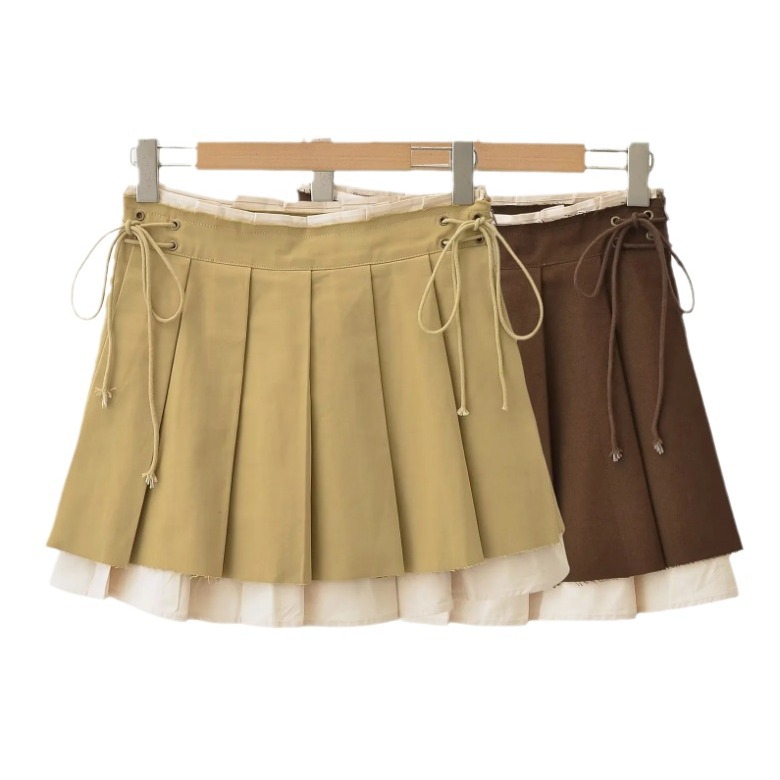 New Women's Pleated Skirt Side Drawstring Contrast Skirt