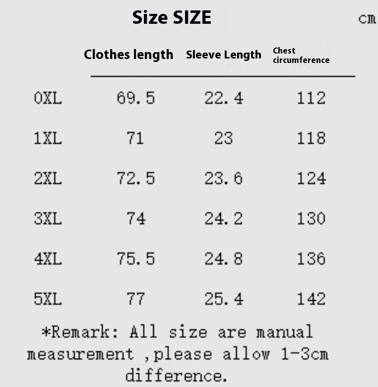 Size: 0XL,1XL,2XL,3XL,4XL,5XL