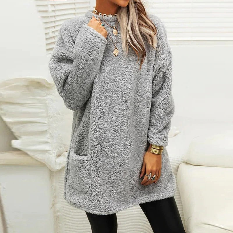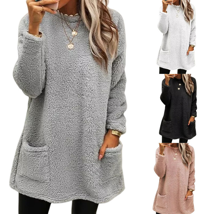 New Women's Pocket Round Neck Casual Warm Long Sleeve T-shirt Skirt