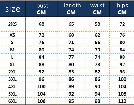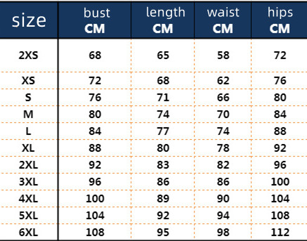 Size: XXS,XS,S,M,L,XL,2XL,3XL,4XL,5XL,6XL