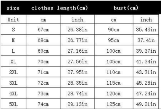 Size: S/M/L/XL/XXL/3XL/4XL/5XL