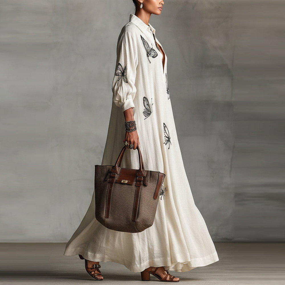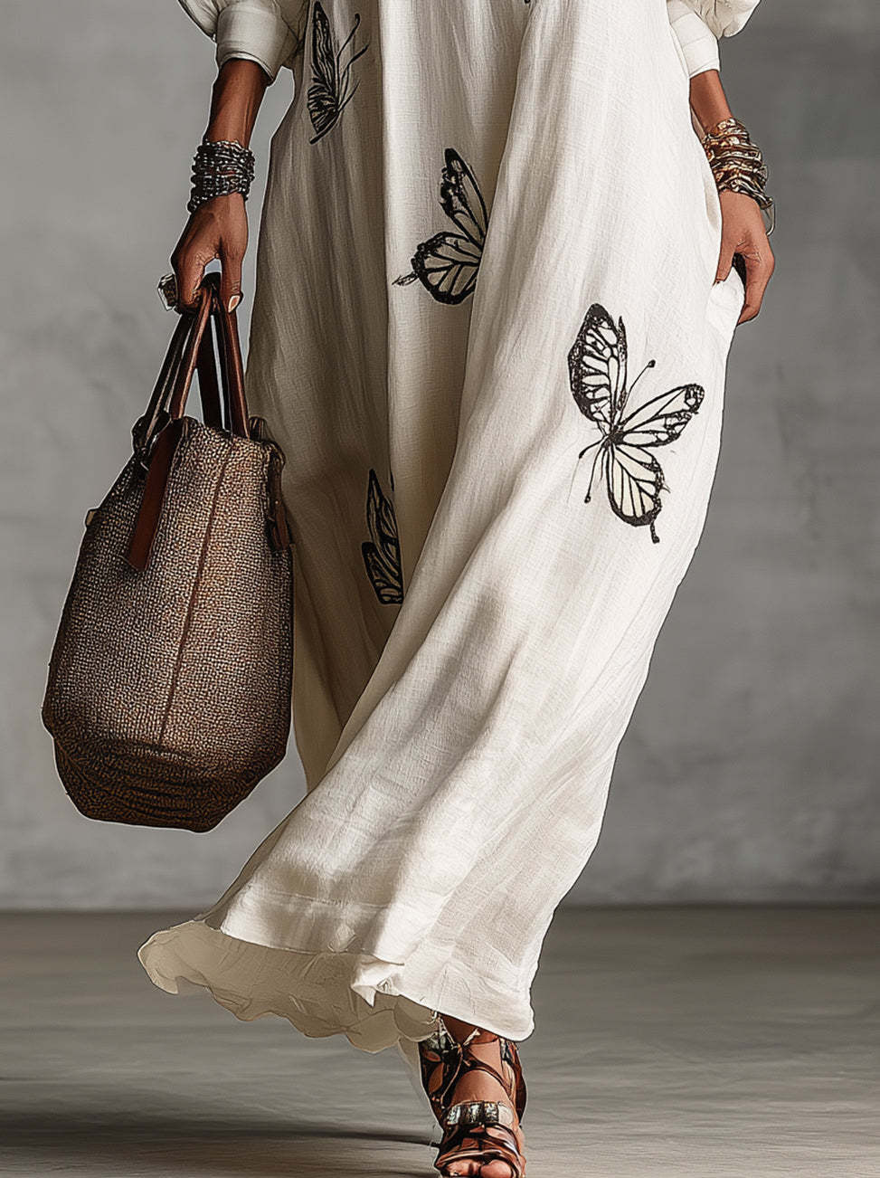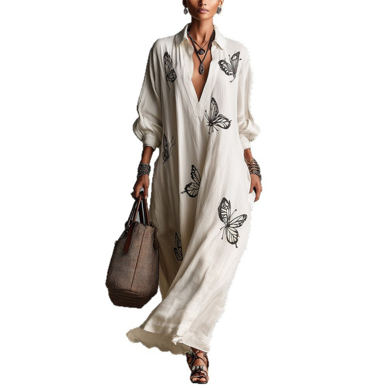 New Womens Relaxed-fit Casual Dress With A Deep V-neck