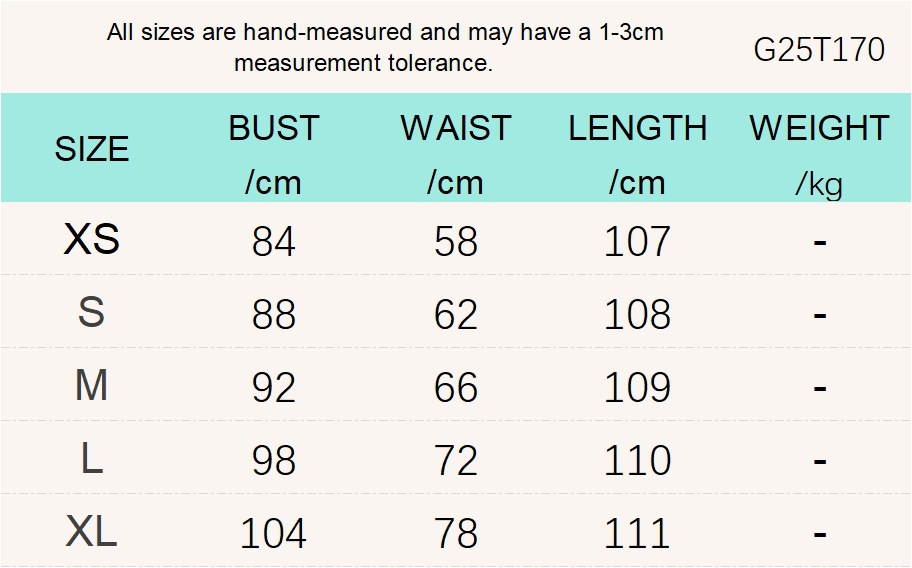 Sizes: XS, S, M, L, XL