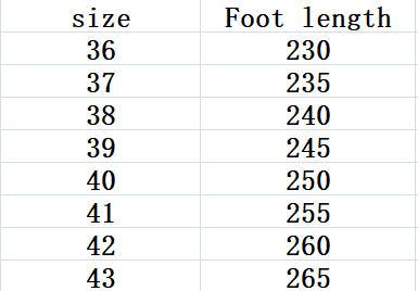 Size: 36, 37, 38, 39, 40, 41, 42, 43