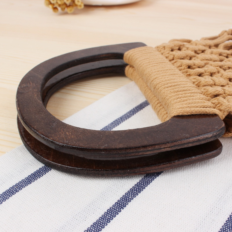 New Wooden Handle Portable Net Bag Straw Woven Bag Cotton Rope Hand-woven Bag