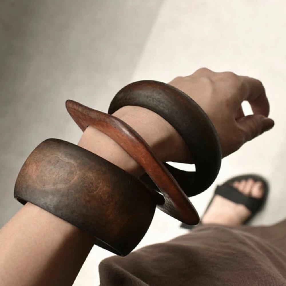 Product information:Color: Wood, black, brown, wide flat bracelet Material: Wooden Style: Original design